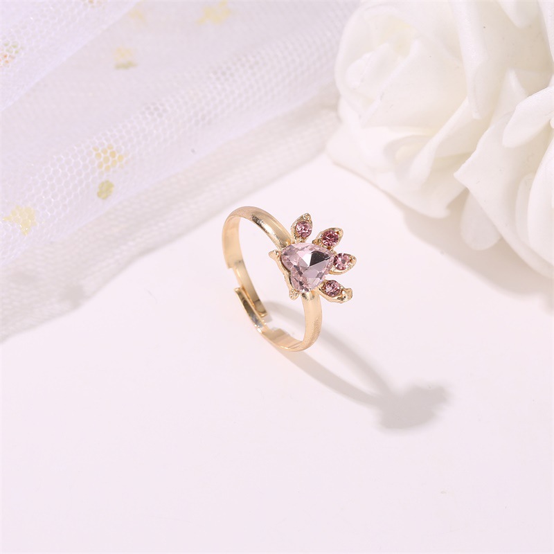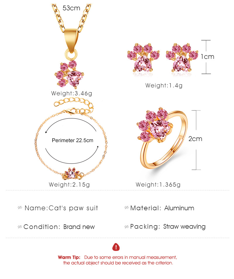 New fashion cat footprint zircon ring bracelet female cute cat claw necklace earrings four sets whol