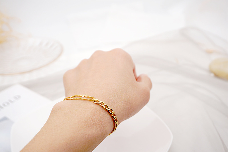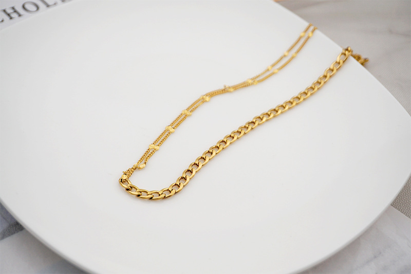 Simple Style Solid Color Titanium Steel Chain Inlaid Gold Bracelets Necklace 1 Piece