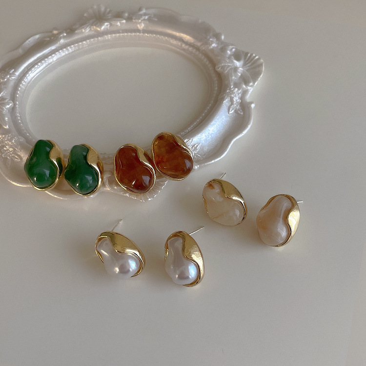 1 Pair INS Style Heart Shape Metal Plating Inlay Resin Gold Plated Womenu0027S Ear Studs