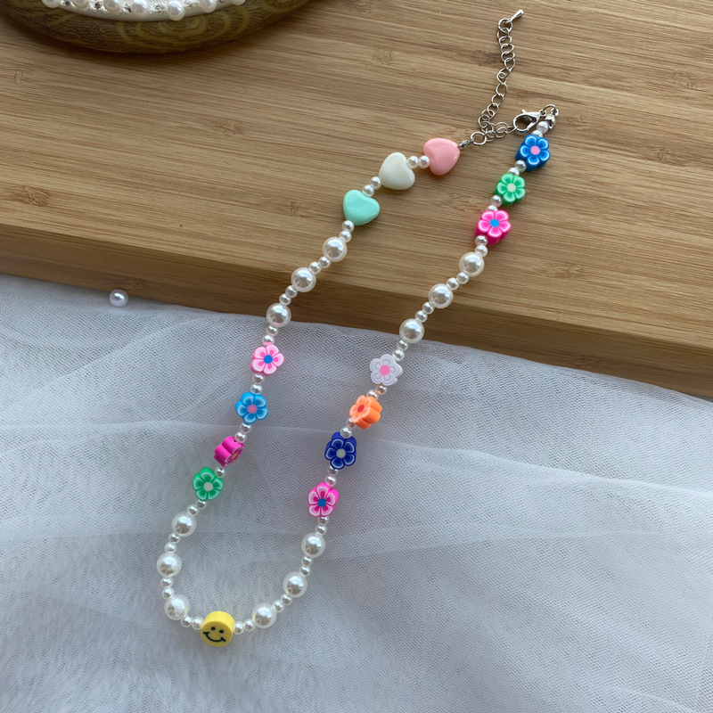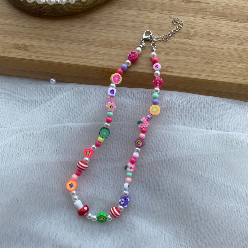 1 Piece Cute Colorful Artificial Pearl soft clay Beaded Womenu0027S Necklace