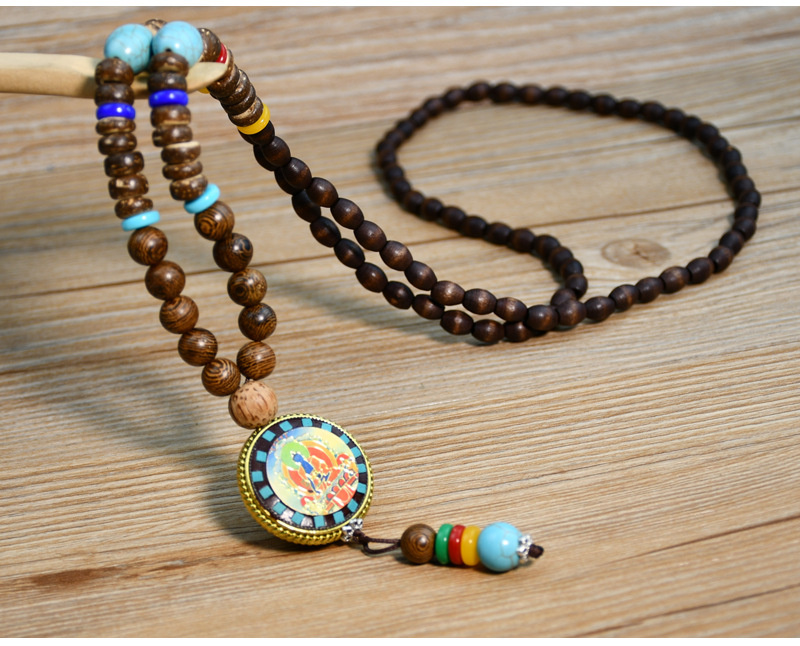 1 Piece Ethnic Style Totem Wooden beads turquoise Mixed materials Unisex Sweater Chain