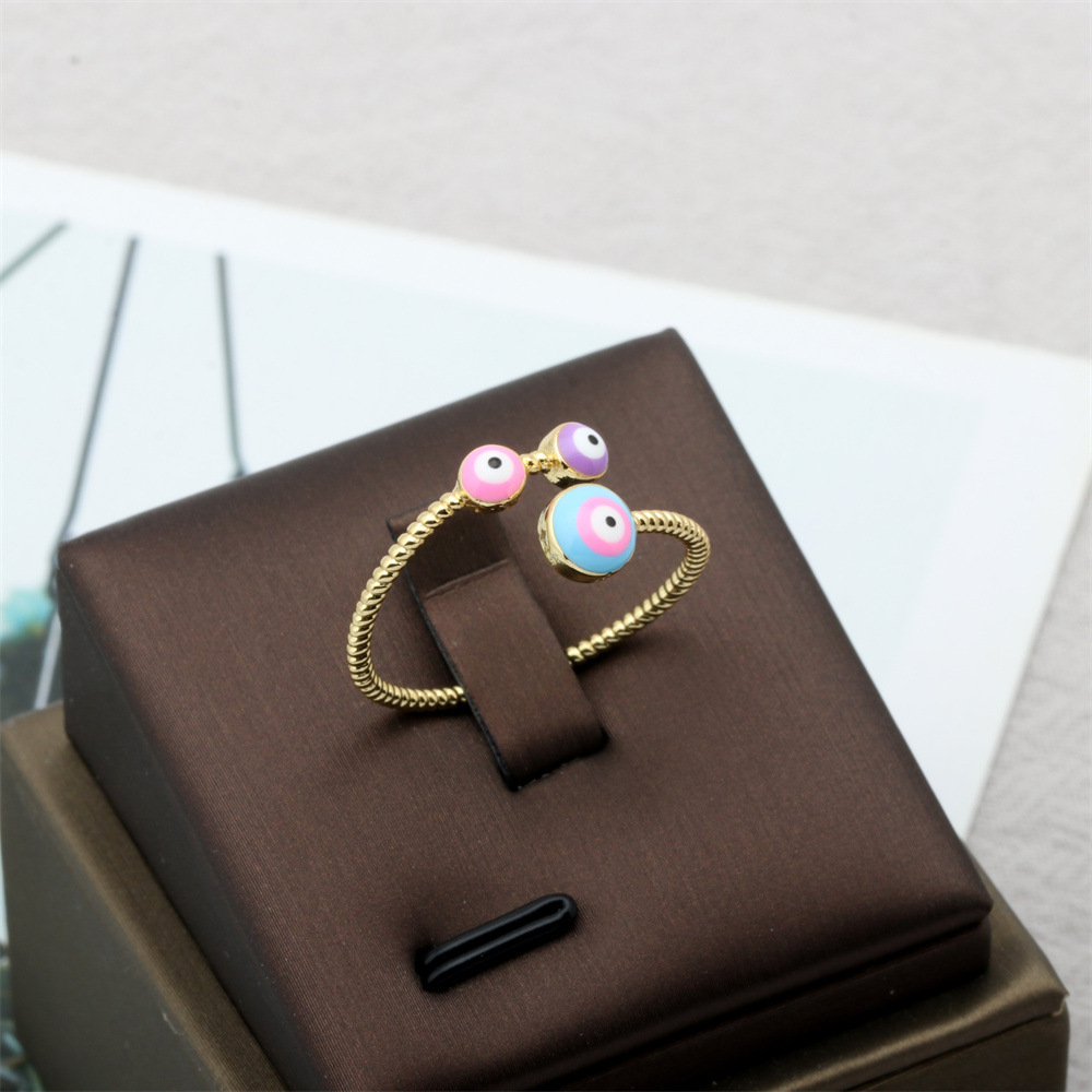 1 Piece Fashion Devilu0027S Eye Copper Enamel Plating Zircon Womenu0027S Open Ring
