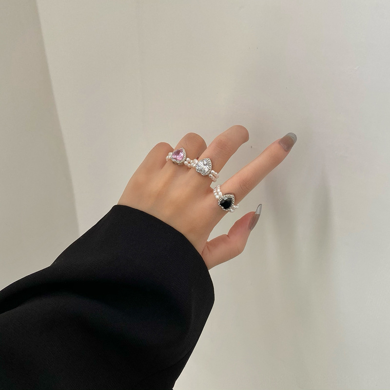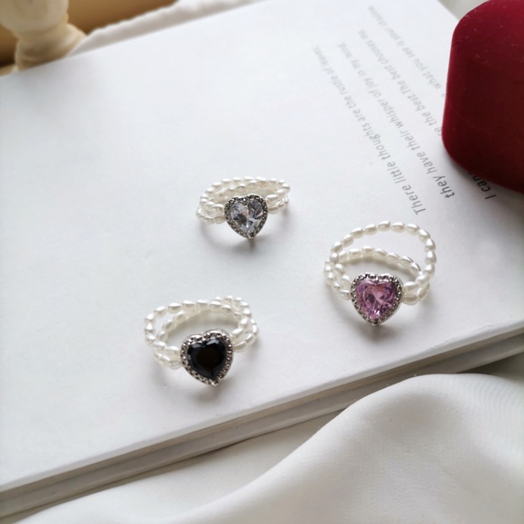 1 Piece Fashion Heart Shape Imitation Pearl Alloy Beaded Plating Inlay Zircon Womenu0027S Rings