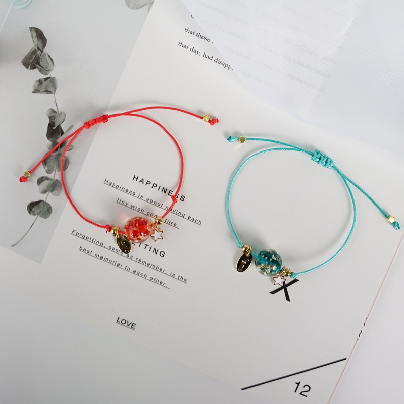 1 Piece Vacation Letter Star Alloy rope Inlay Glass Couple Bracelets