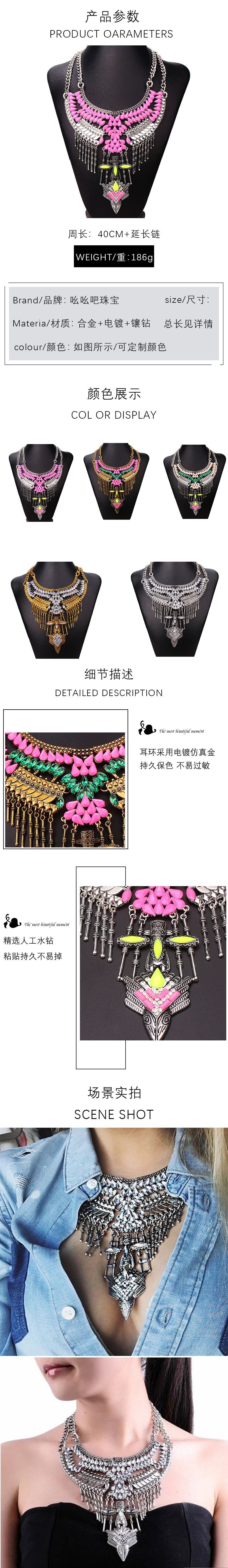 Bohemian geometric alloy diamond gemstone necklace wholesale