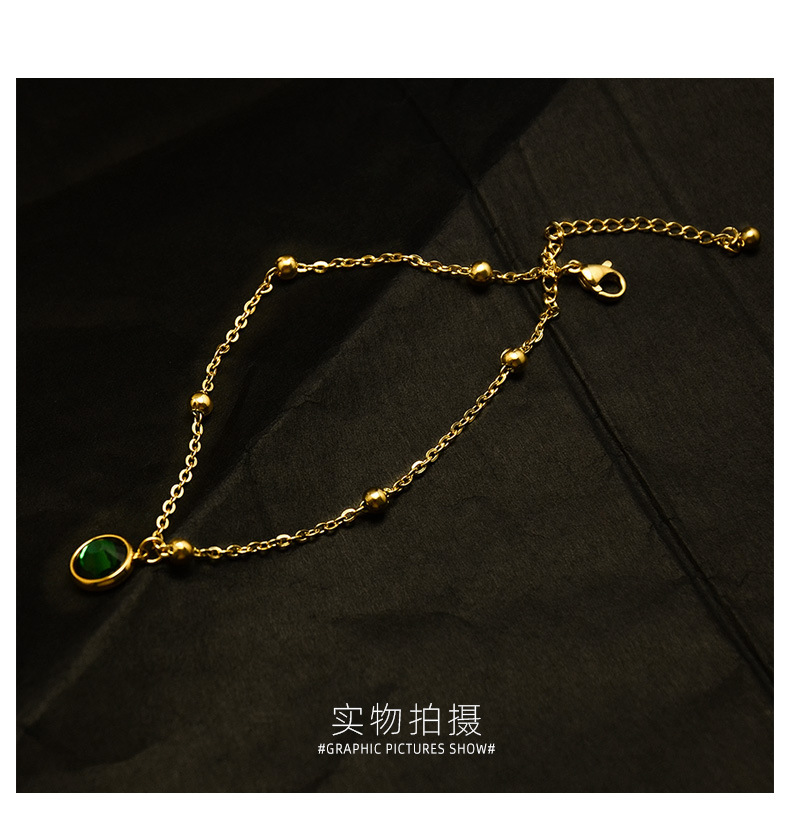 Cold wind multiple steel balls green jade stone anklet