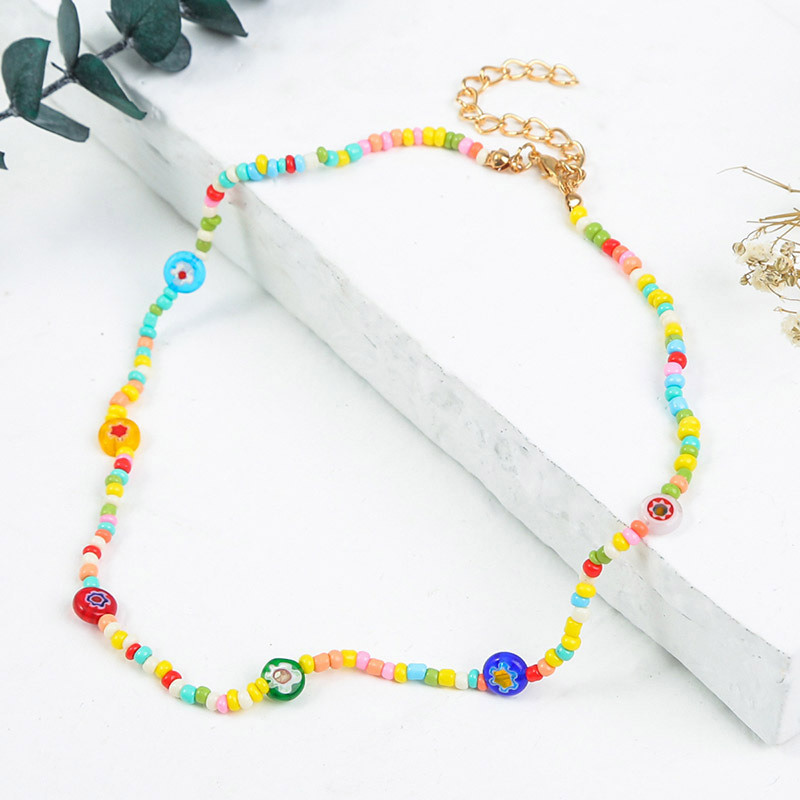 creative contrast color colorful flower glass miyuki beads necklace wholesale