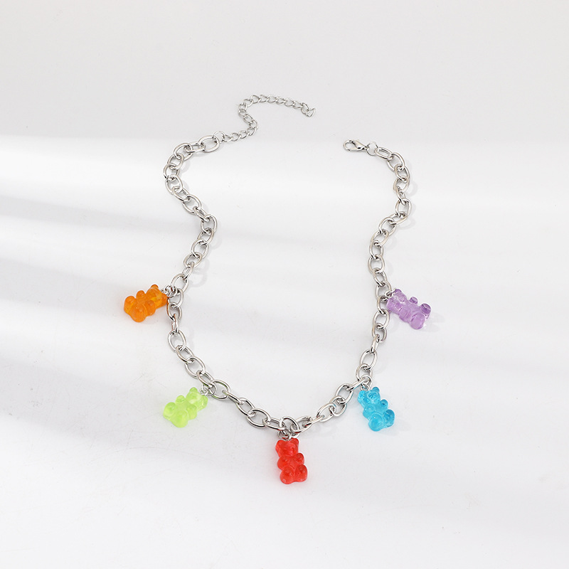 Cute cartoon bear necklace transparent resin bear pendant