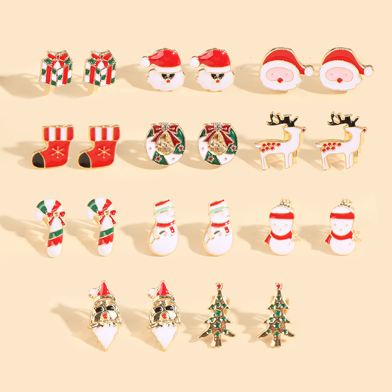 Cute Christmas Tree Santa Claus Snowman Alloy Enamel Womenu0027S Earrings 11 Pairs