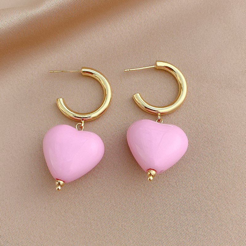 cute pink heart sweet contrast color alloy resin earrings wholesale