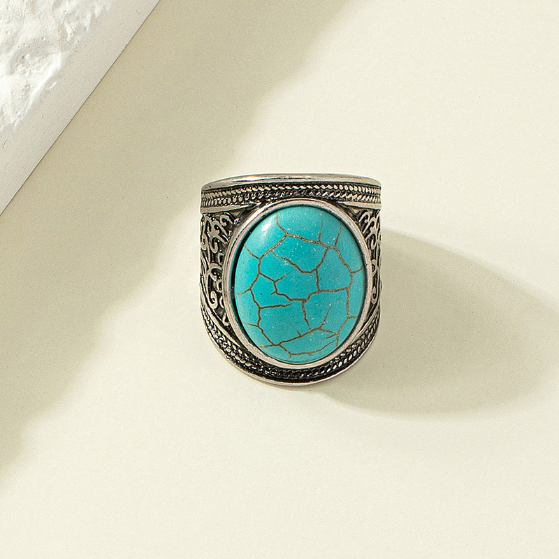 Ethnic Mongolian element inlaid turquoise gemstone alloy ring