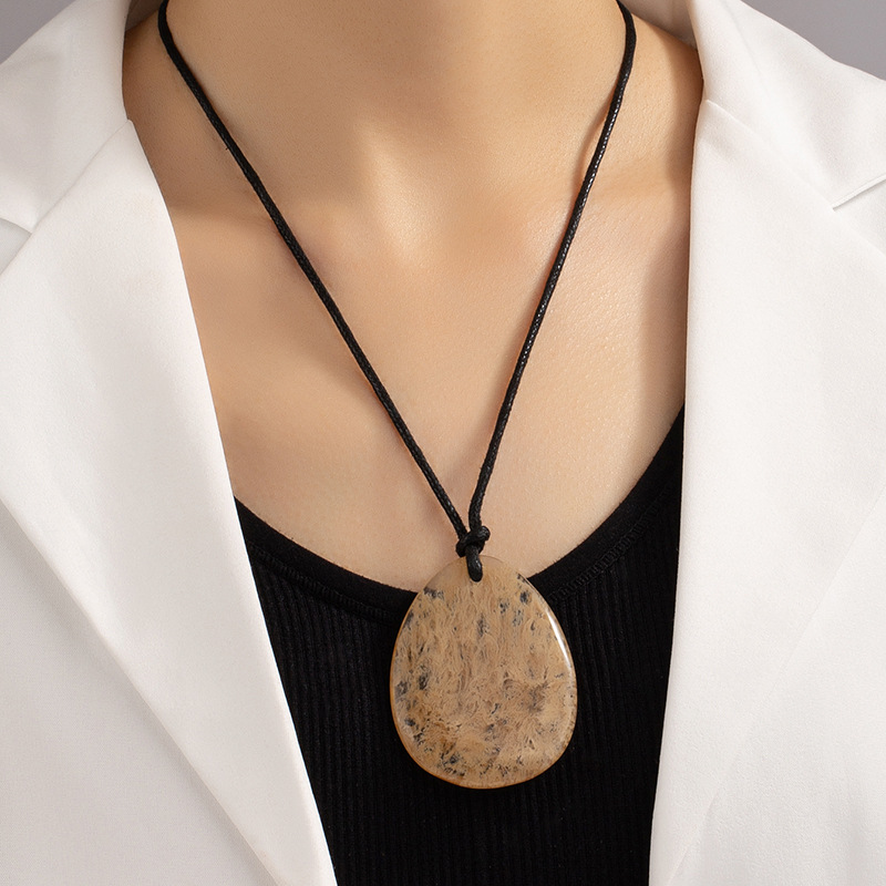 Ethnic retro resin pendant necklace female niche design amber long sweater chain