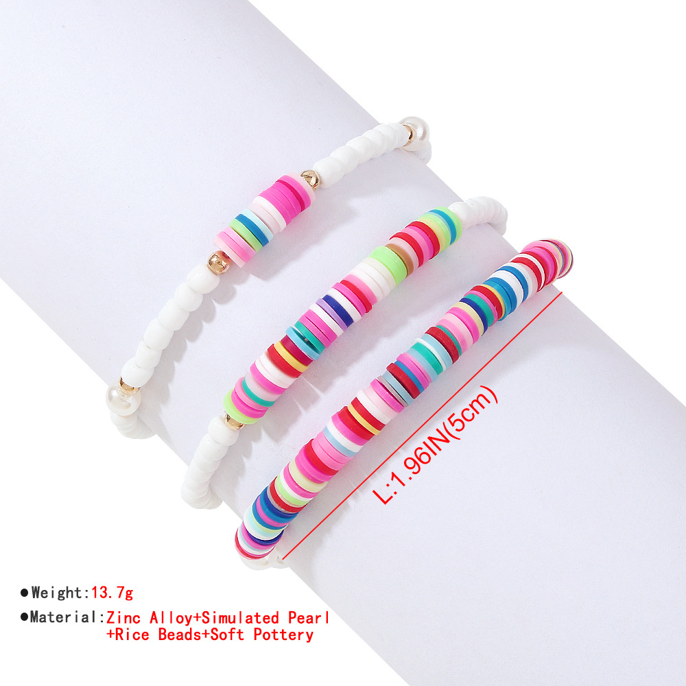 ethnic style geometric elastic soft pottery beaded contrast color bracelet