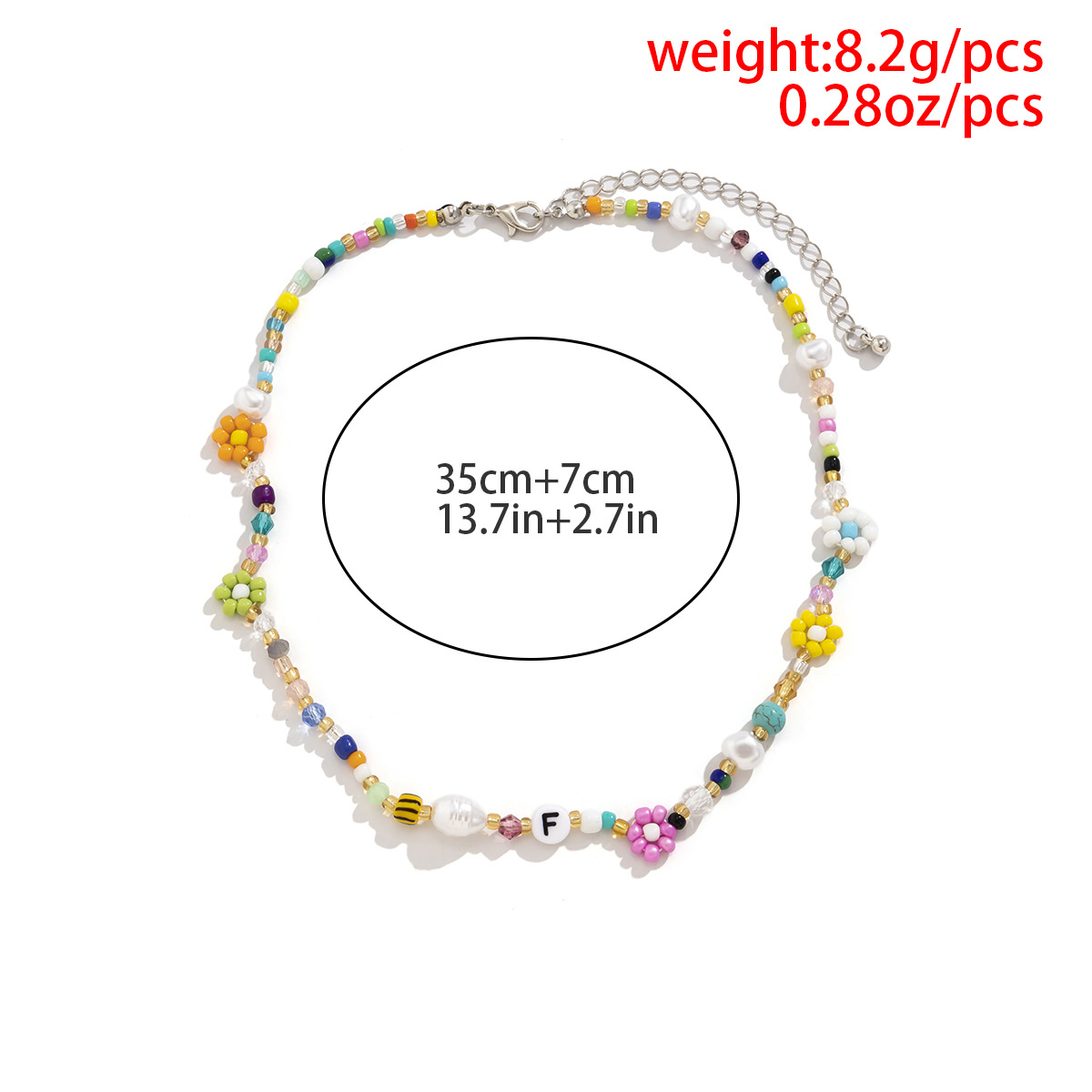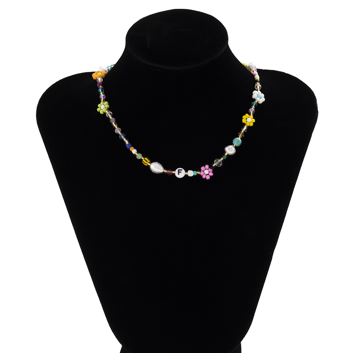 Ethnic Style Letter Flower Resin Beaded Necklace