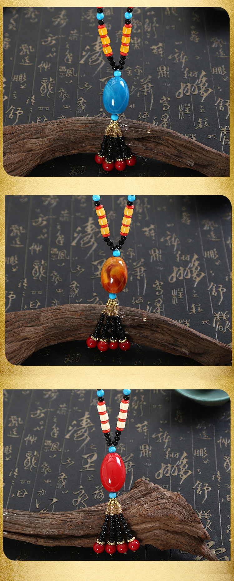 Ethnic Style Oval Beeswax Beaded Tassel Womenu0027S Sweater Chain 1 Piece