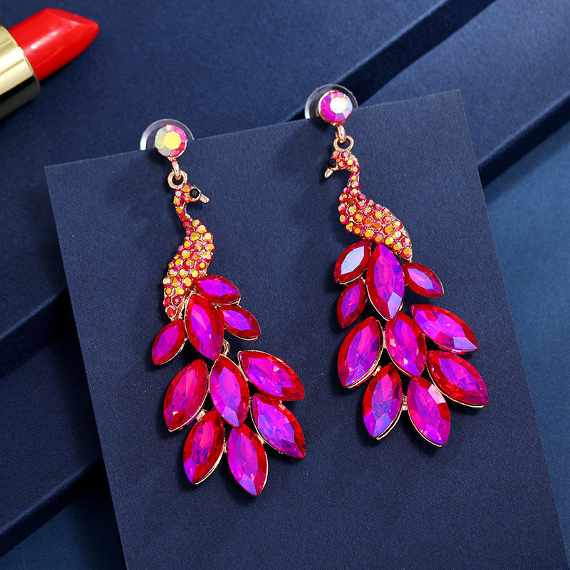 Ethnic Style Peacock Metal Rhinestone Womenu0027S Drop Earrings 1 Pair