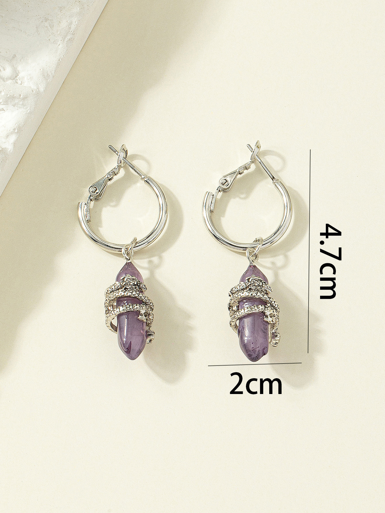 ethnic style szodiac dragon amethyst stone hexagonal column pendant alloy earrings
