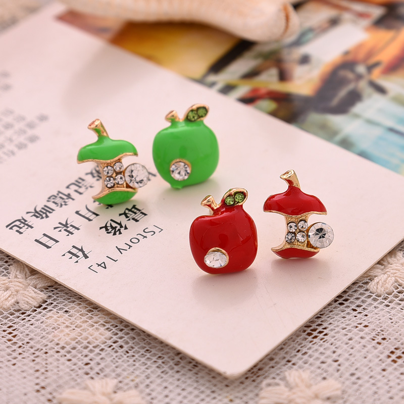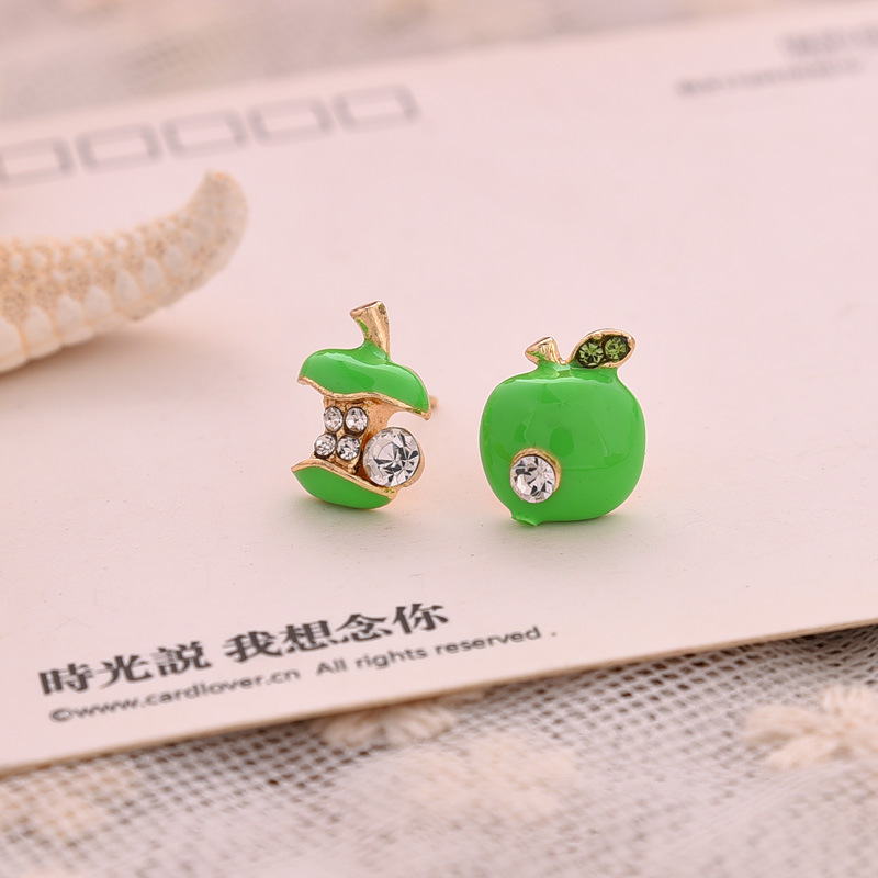 Fashion Asymmetric Apple Inlaid Rhinestone Stud Earrings Wholesale