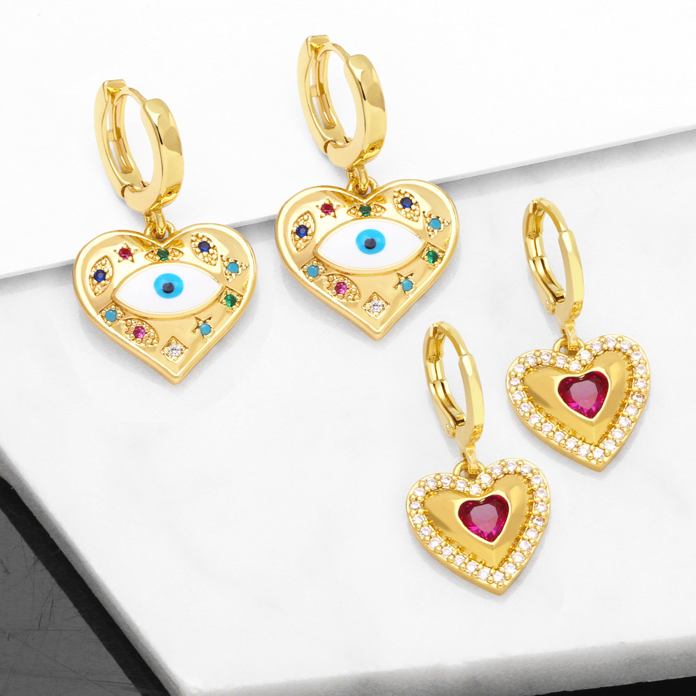 Fashion Creative Micro-Inlaid Colorful Zircon Heart-Shaped Evil Eyes Earrings
