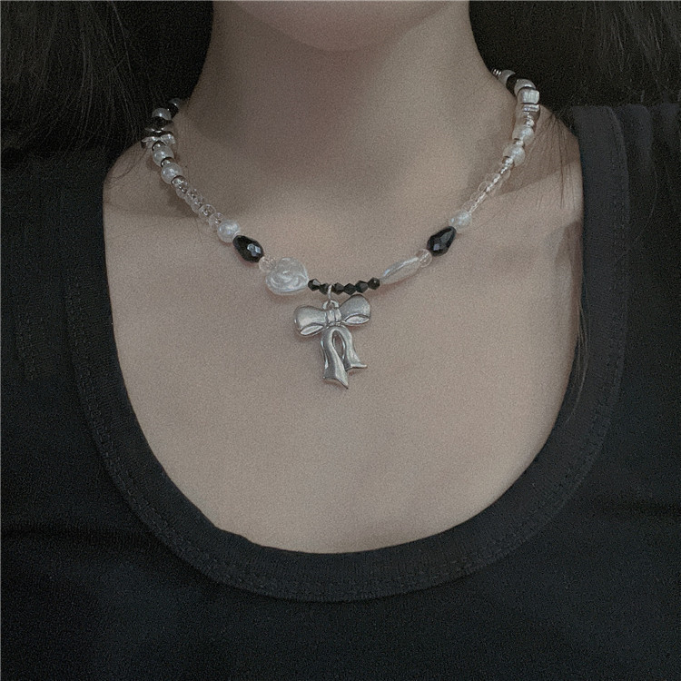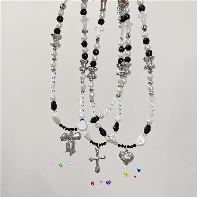 Fashion Cross Bow Knot Beaded Artificial Pearls Womenu0027S Necklace