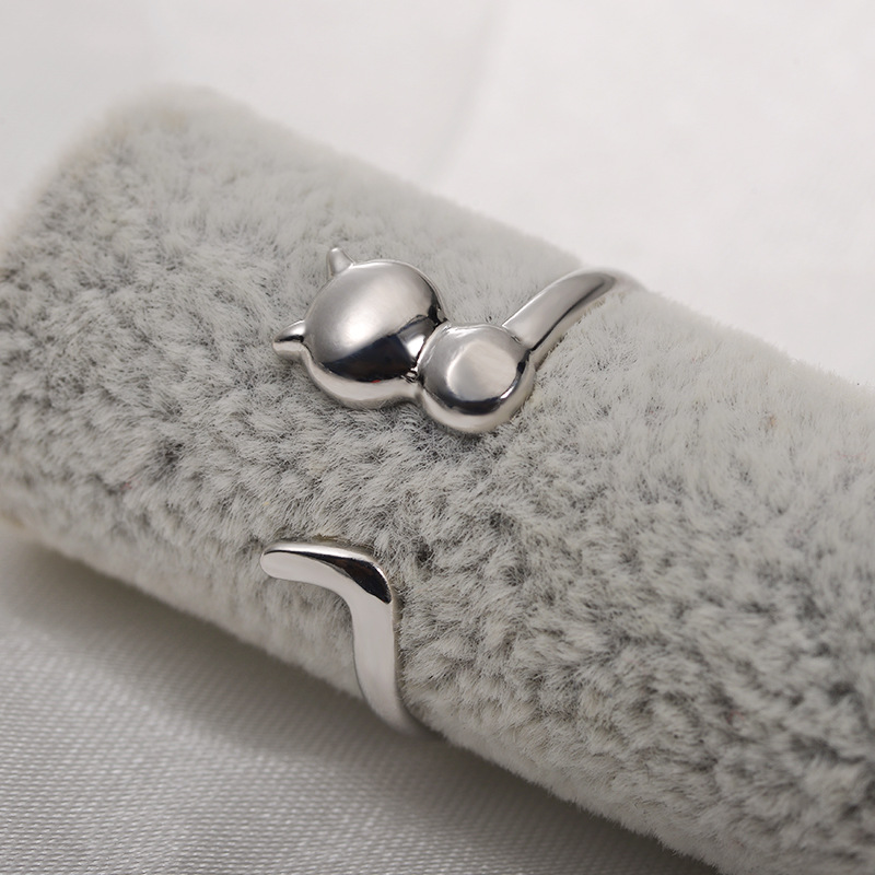 Fashion cute girl opening adjustable glossy lucky cat copper ring