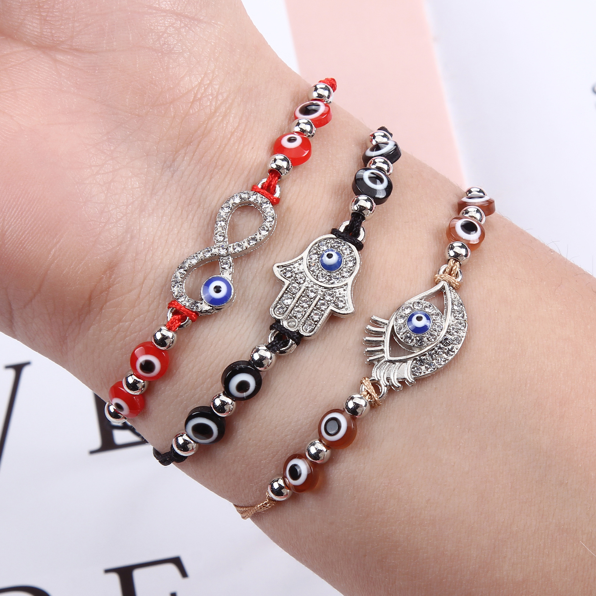 Fashion Devilu0027S Eye Alloy Plating Inlay Artificial Gemstones Womenu0027S Bracelets 12 Pieces