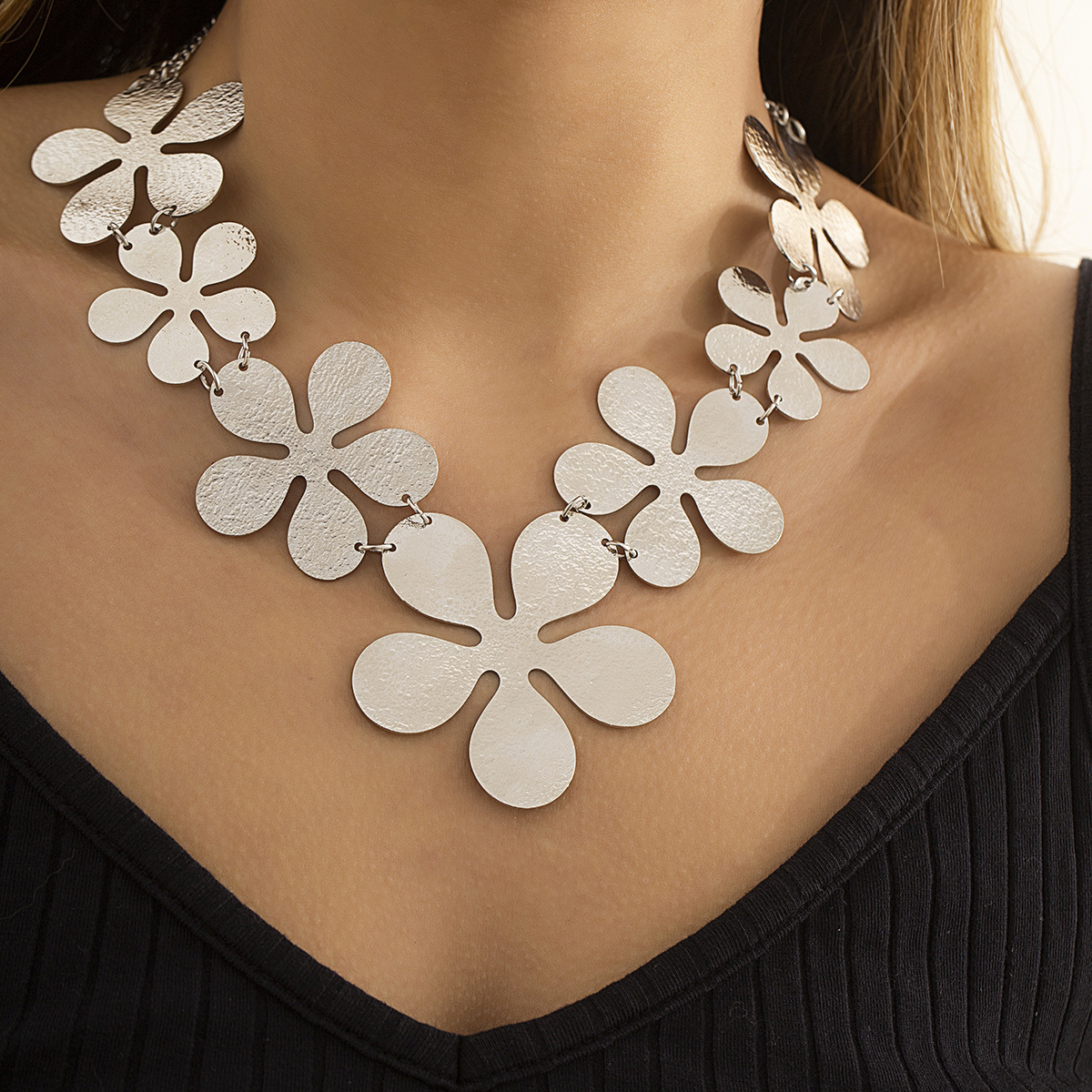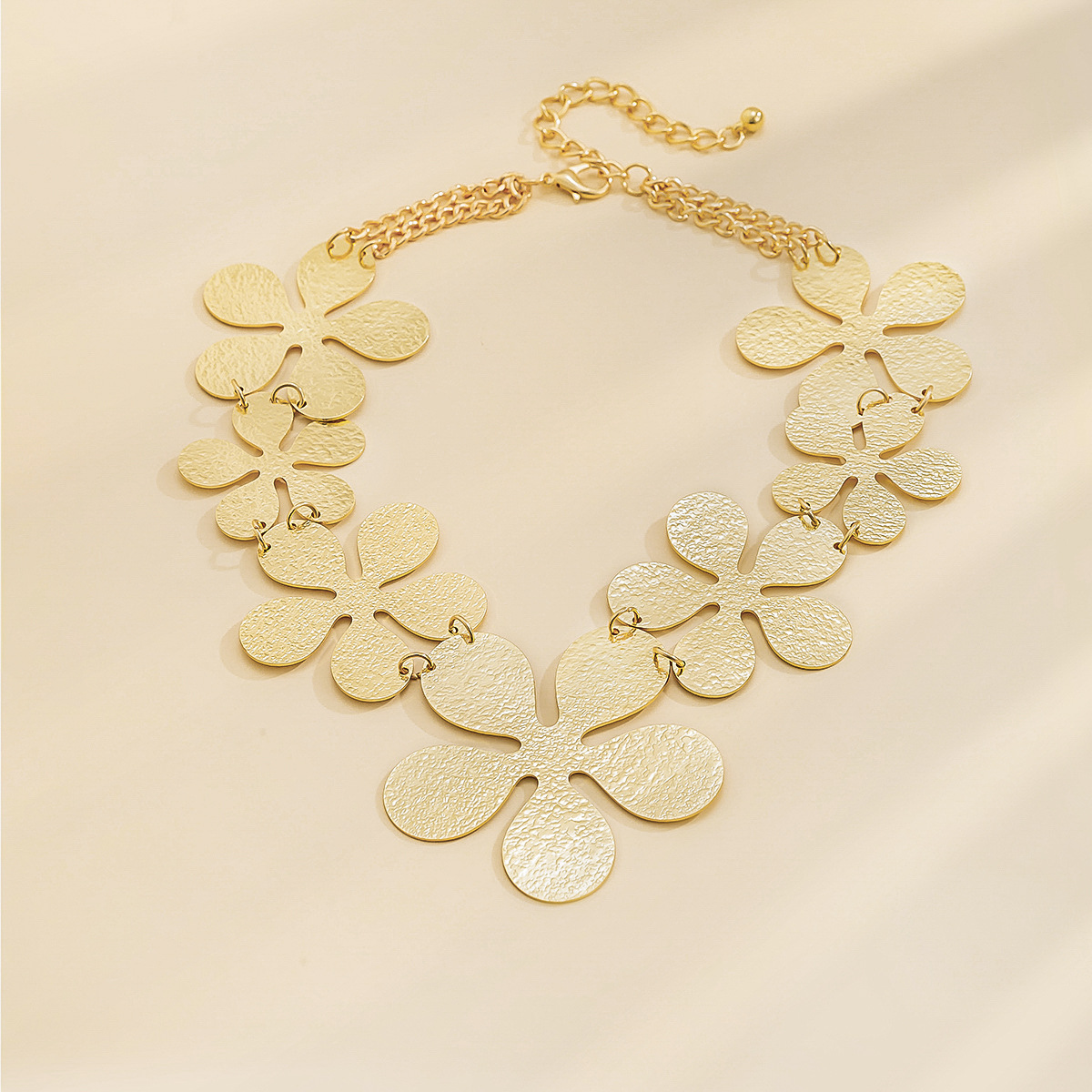 fashion gold plated flower shape hip-hop simple alloy necklace