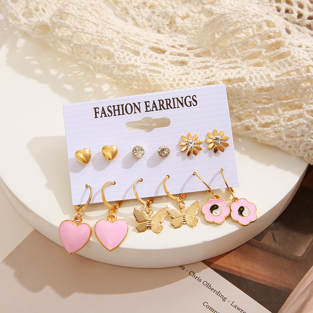 Fashion Heart Shape Butterfly Alloy Plating Rhinestones Earrings