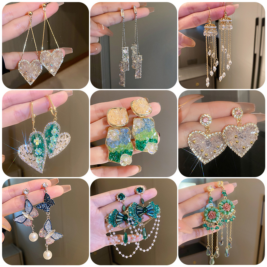 Fashion Heart Shape Flower Butterfly Alloy Inlay Artificial Crystal Zircon Earrings
