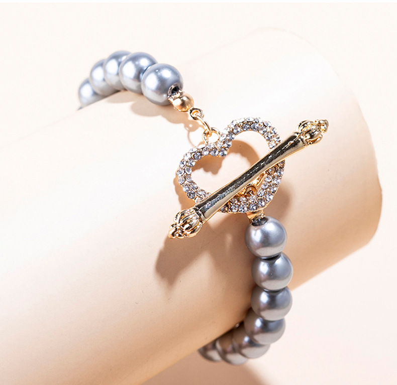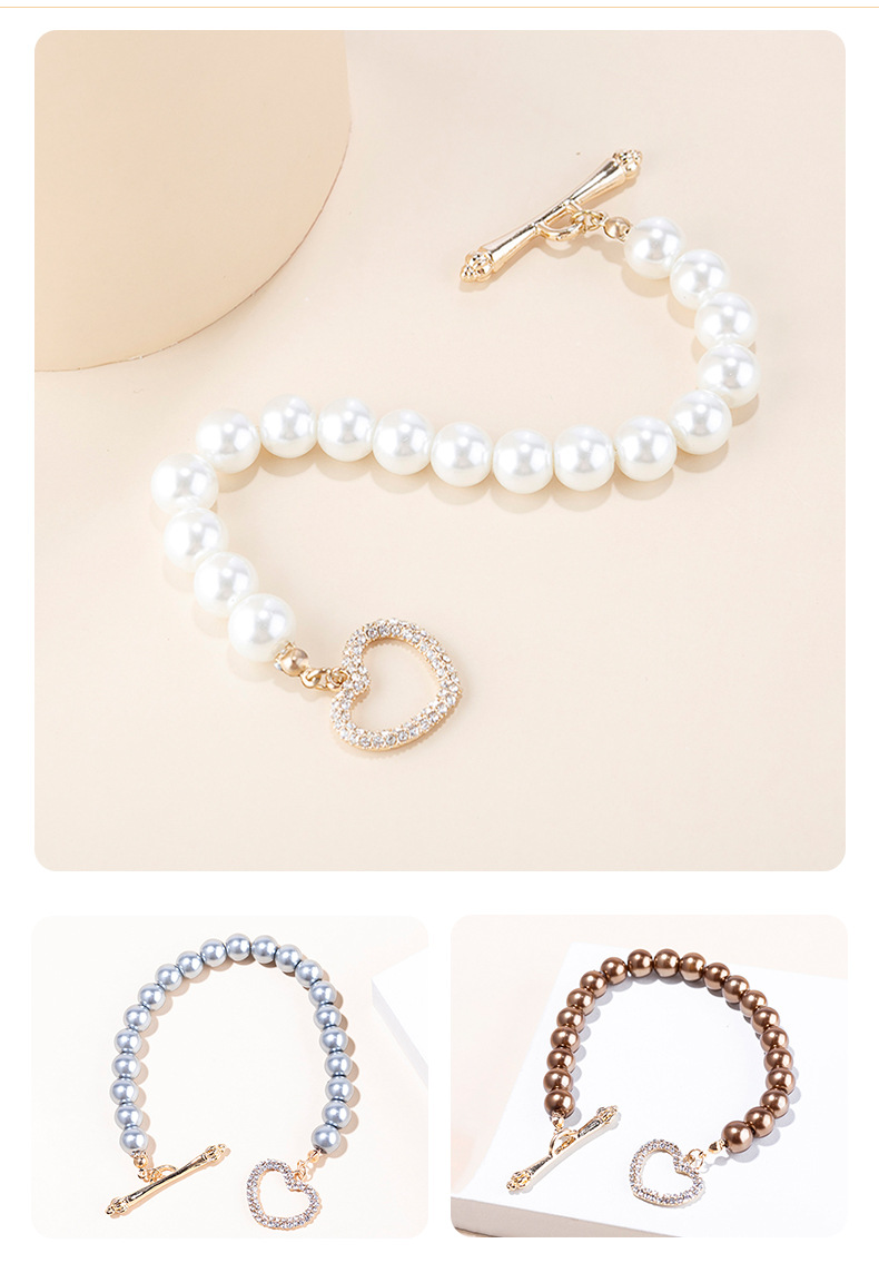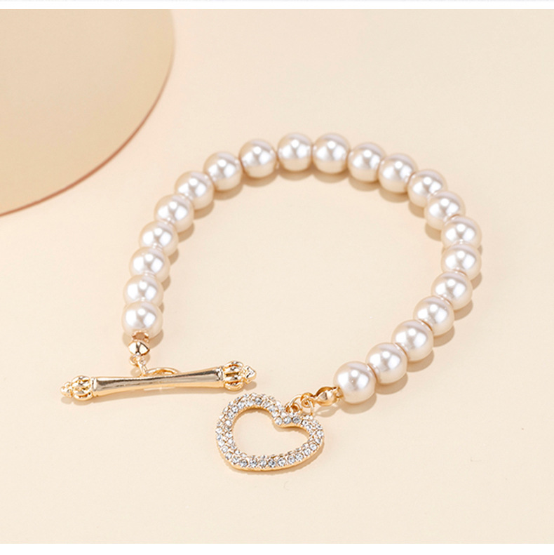 Fashion Heart Shape Imitation Pearl Inlay Rhinestones Bracelets
