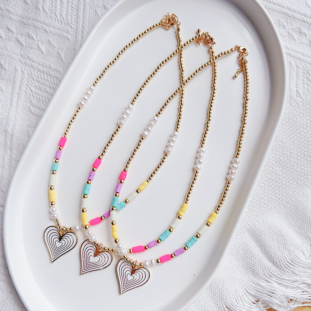Fashion Heart Shape Mother pearl shellfish soft clay Knitting Womenu0027S Pendant Necklace 1 Piece
