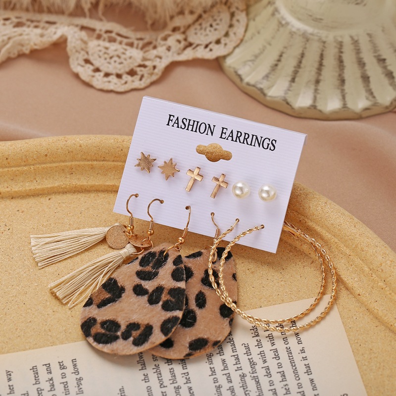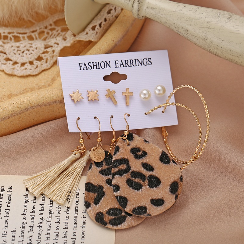 fashion jewelry new tassel earrings set six-piece creative leopard earrings wholesale nihaojewelry