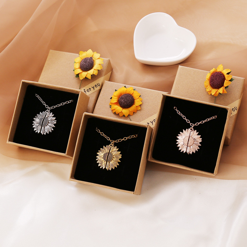 fashion open double-sided lettering sunflower pendent necklace