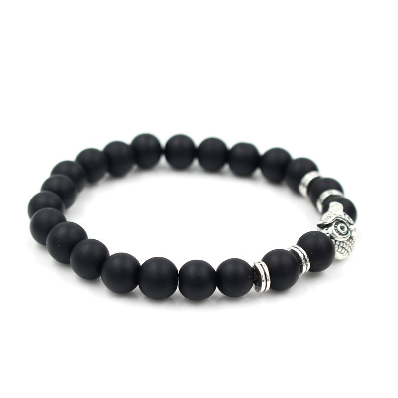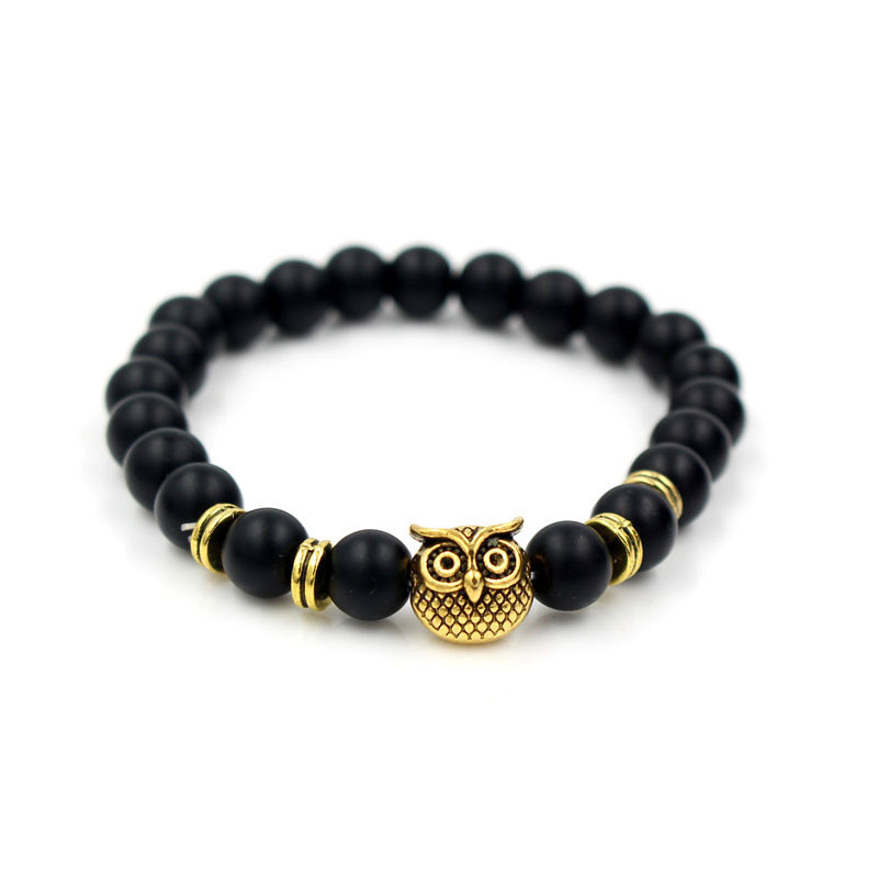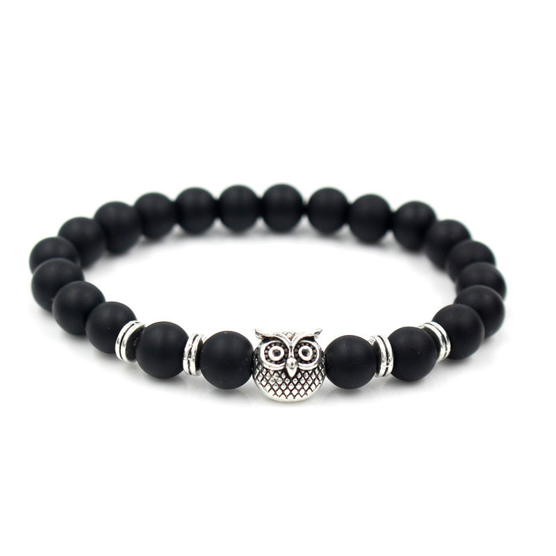 Fashion Owl Bead Stretch Bracelet Natural Lava Volcanic Agate Bead Energy Bracelet
