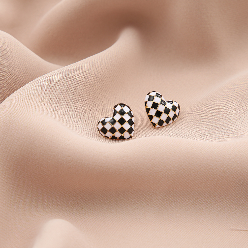fashion pearl earrings simple heart-shaped plaid alloy drop earrings