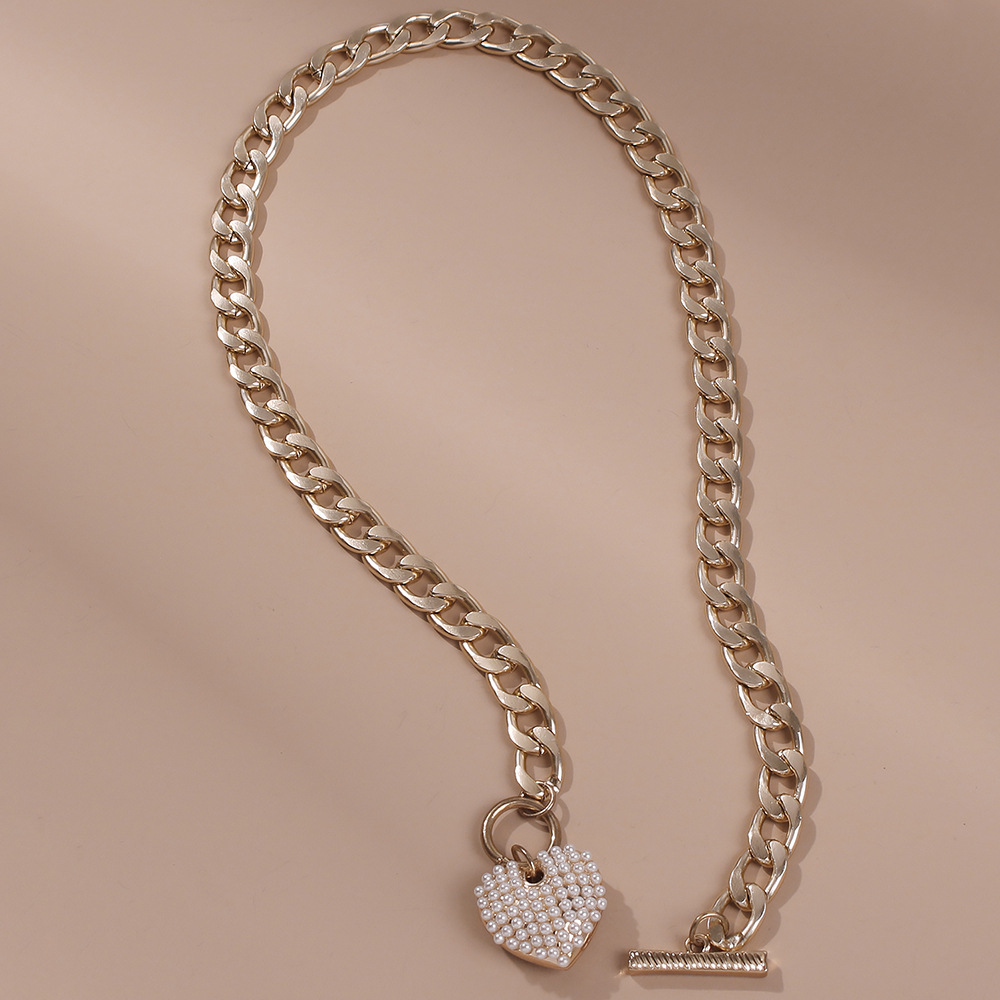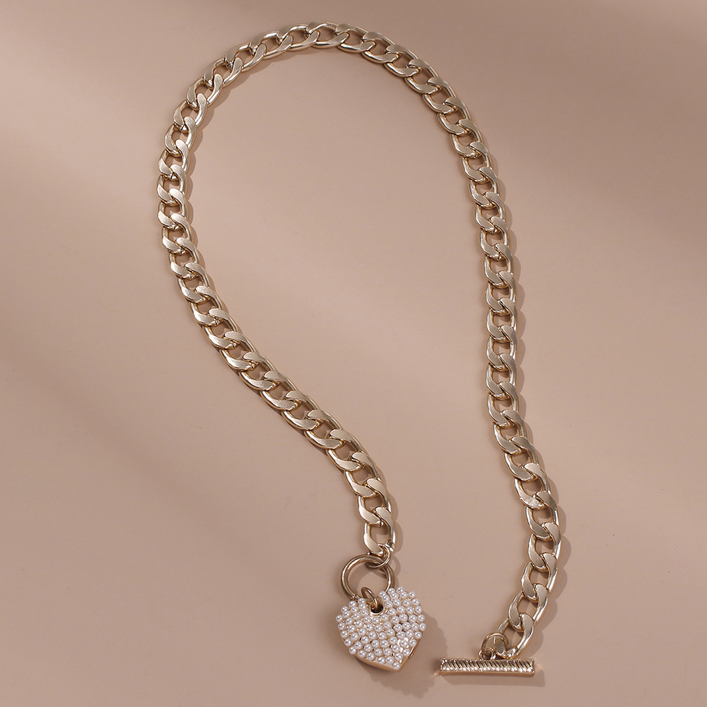 Fashion punk style new pearl heart-shape necklace for women bold water wave clavicle chain simple ne