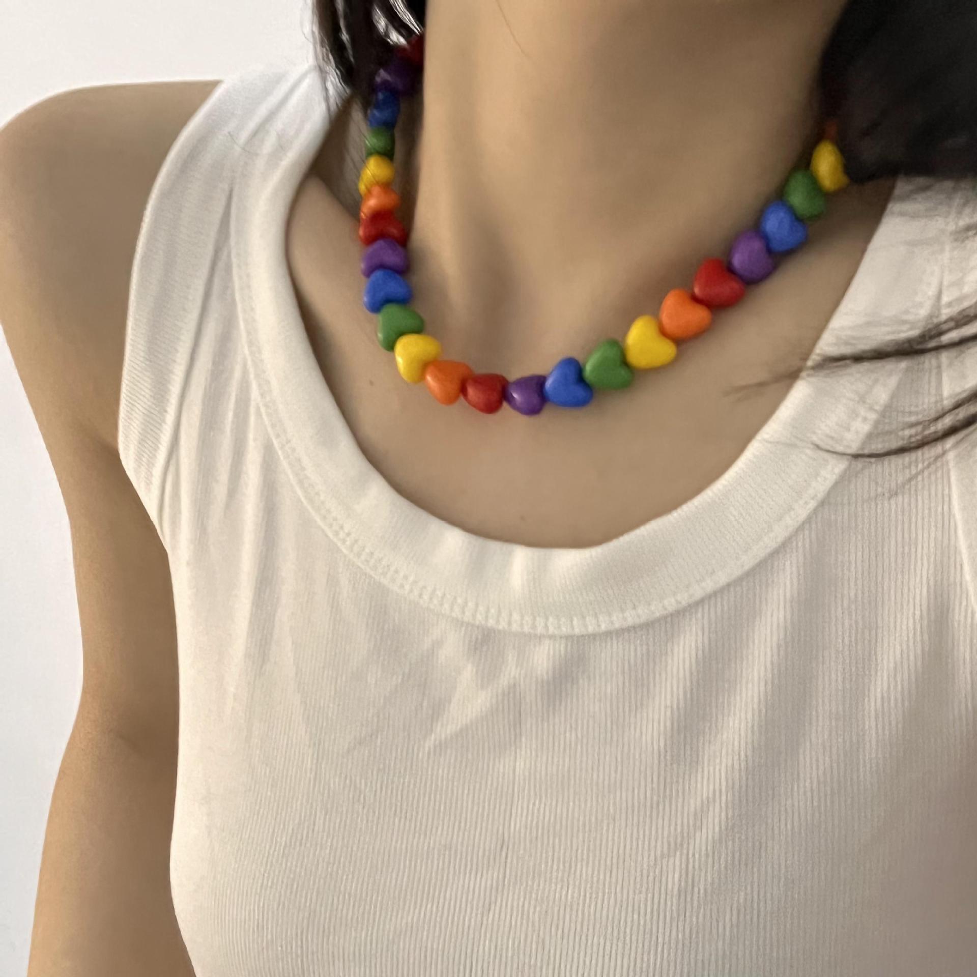 Fashion Retro Colorful Heart Beaded Acrylic Necklace Wholesale