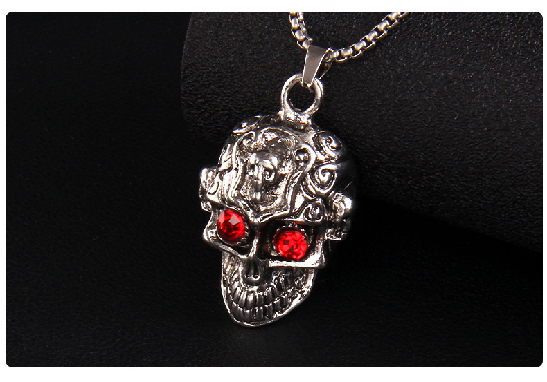 Fashion Skull Stainless Steel Alloy Inlay Artificial Diamond Unisex Pendant Necklace 1 Piece