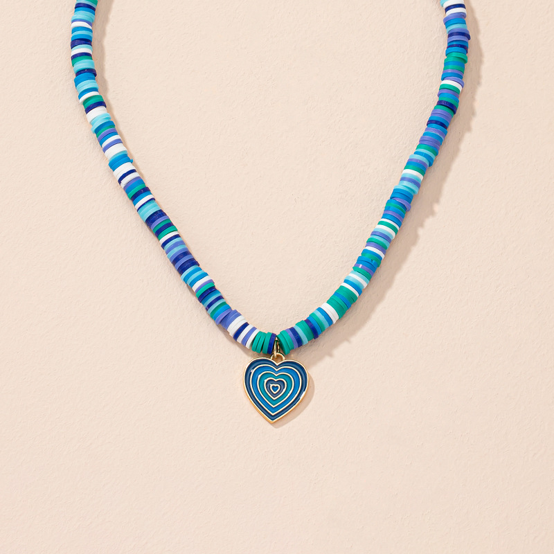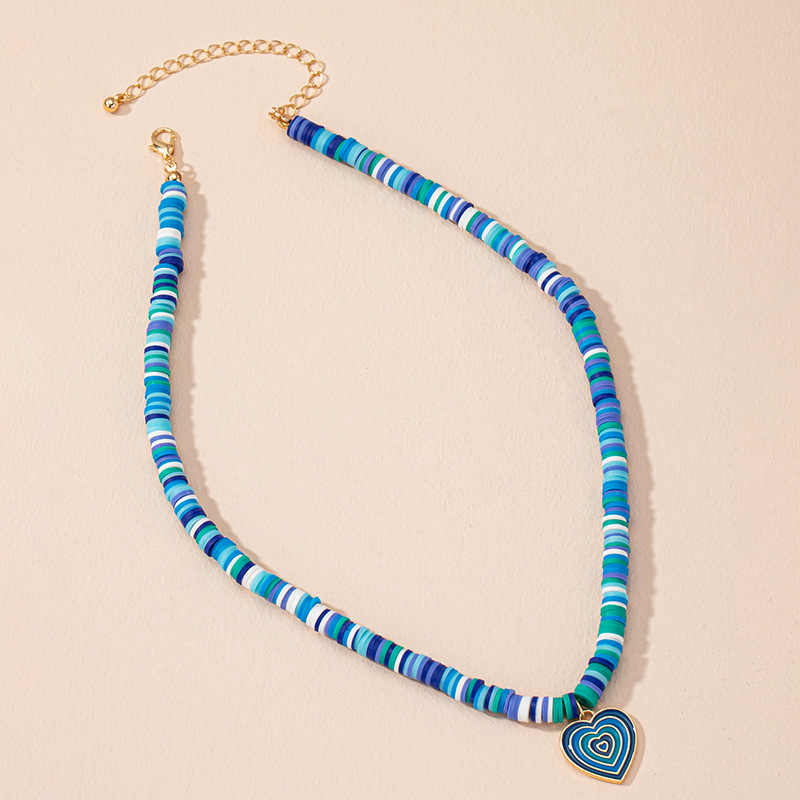 Fashion sweater chain blue soft ceramic heart-shape necklace