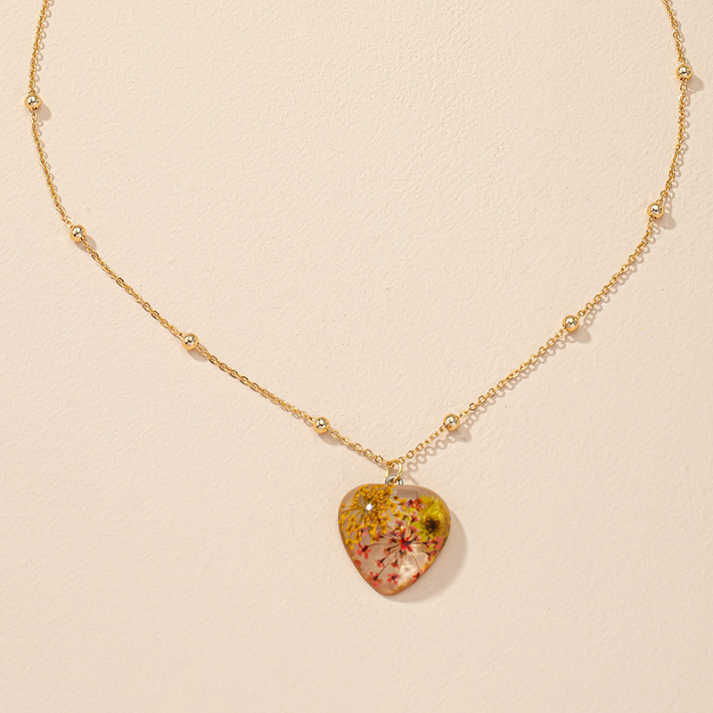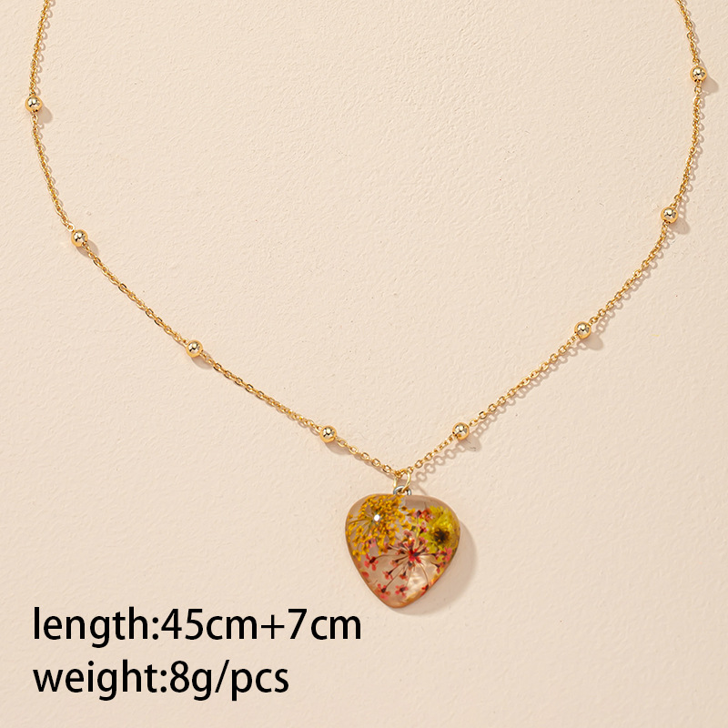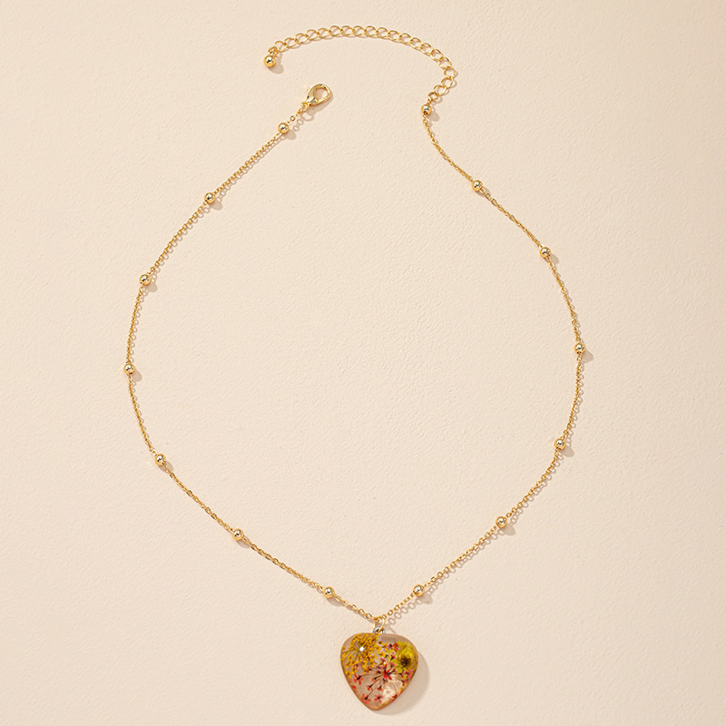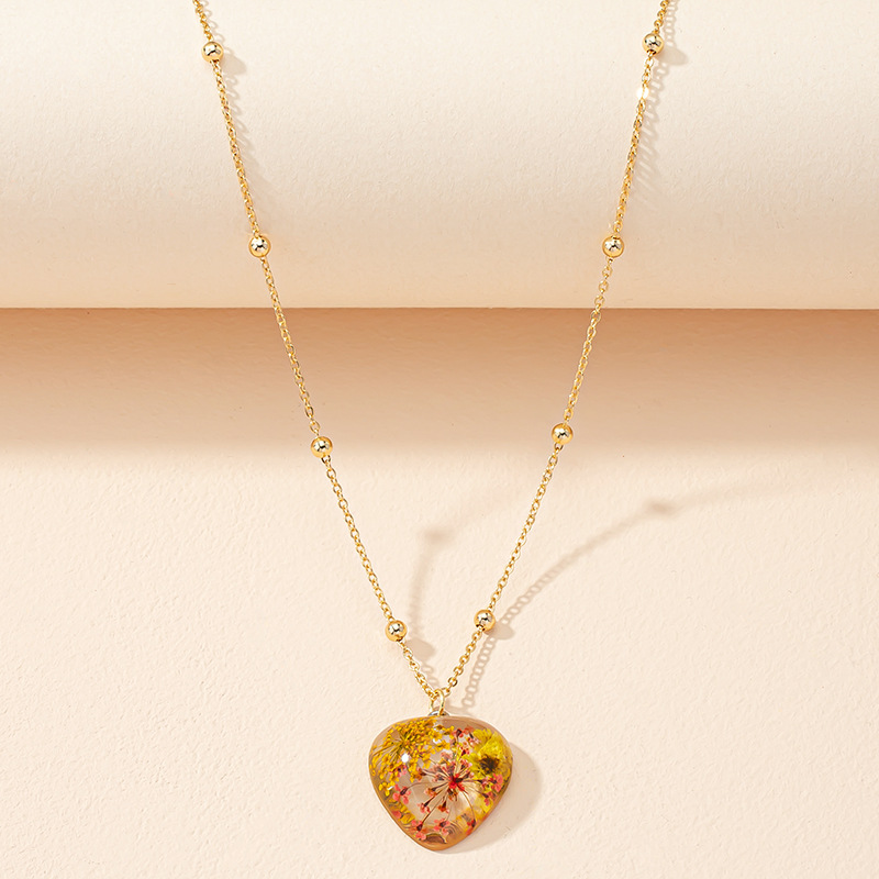 fashion vintage resin heart dry flower pendant alloy collarbone chain