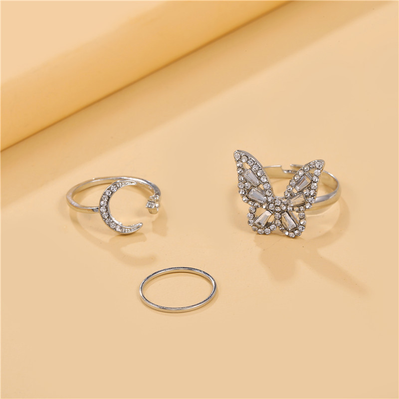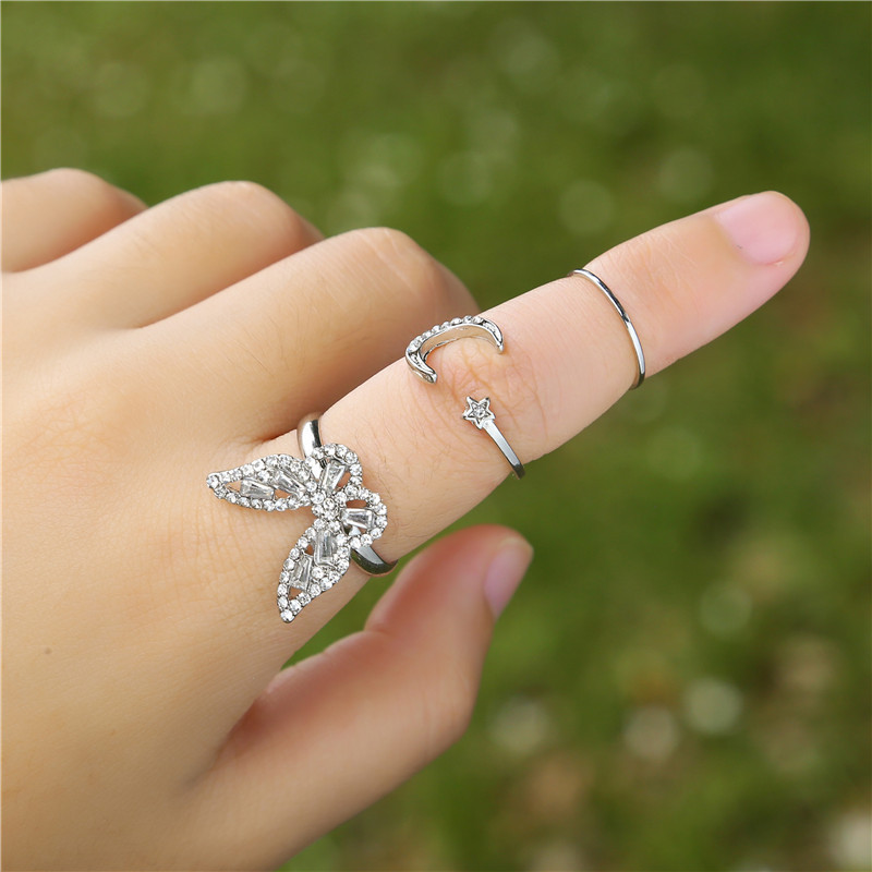 fashion zircon butterfly moon open ring