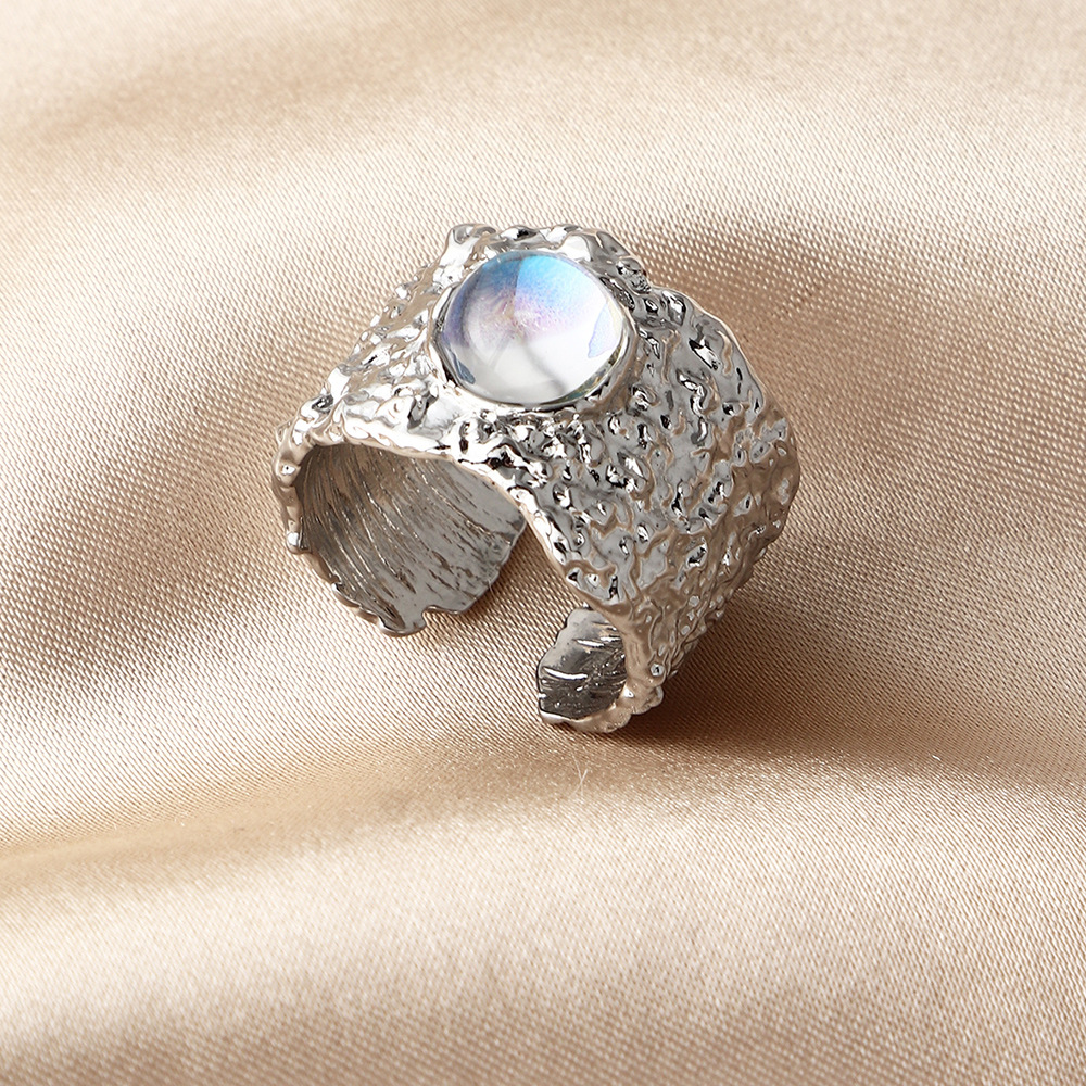 Female Alloy Cat Eye Crystal Ring Irregular Opening Adjustable Fashion Index Finger Ring