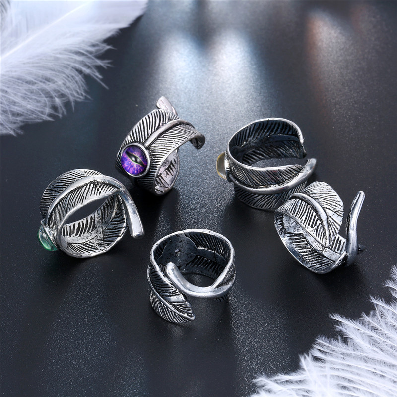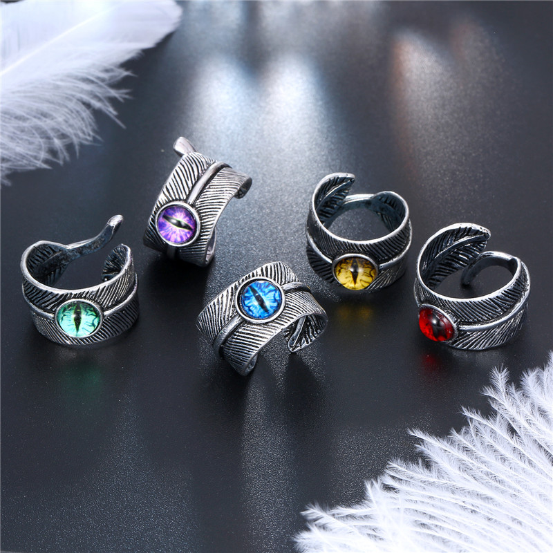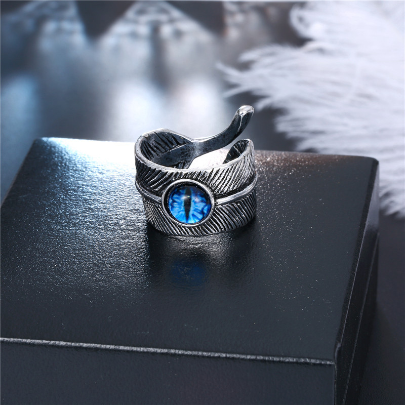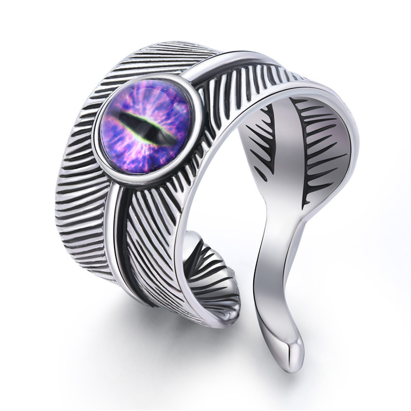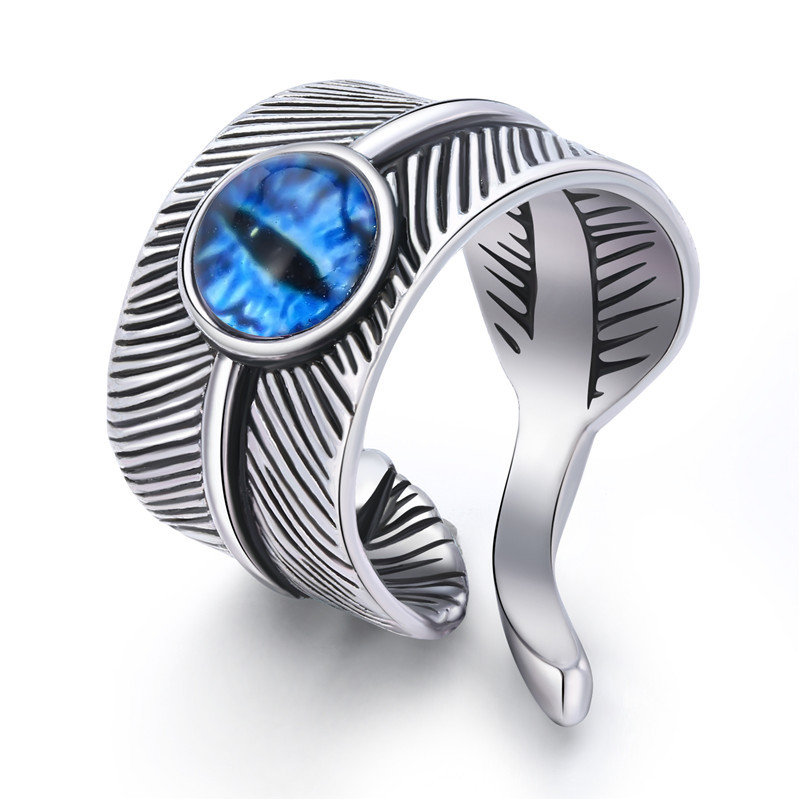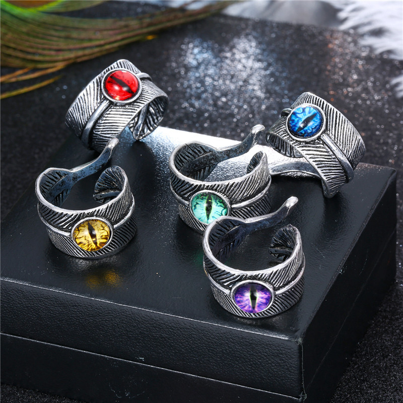 European Ornament Trendy Menu0027s Ring Vintage Gothic Devilu0027s Eye Feather Open Ring Explosion