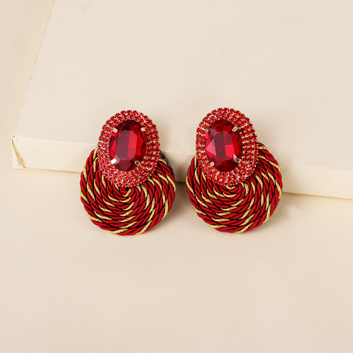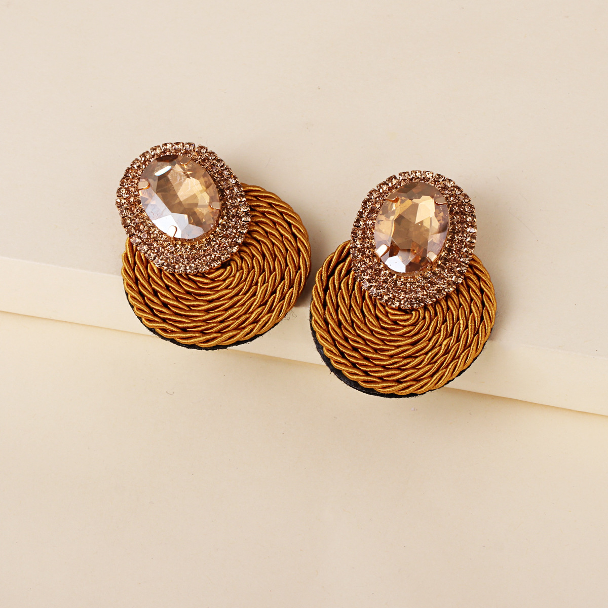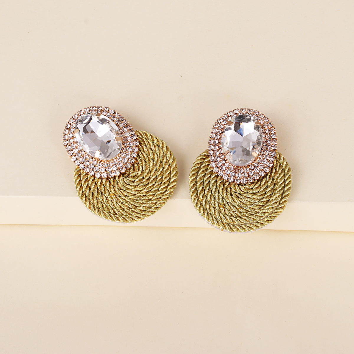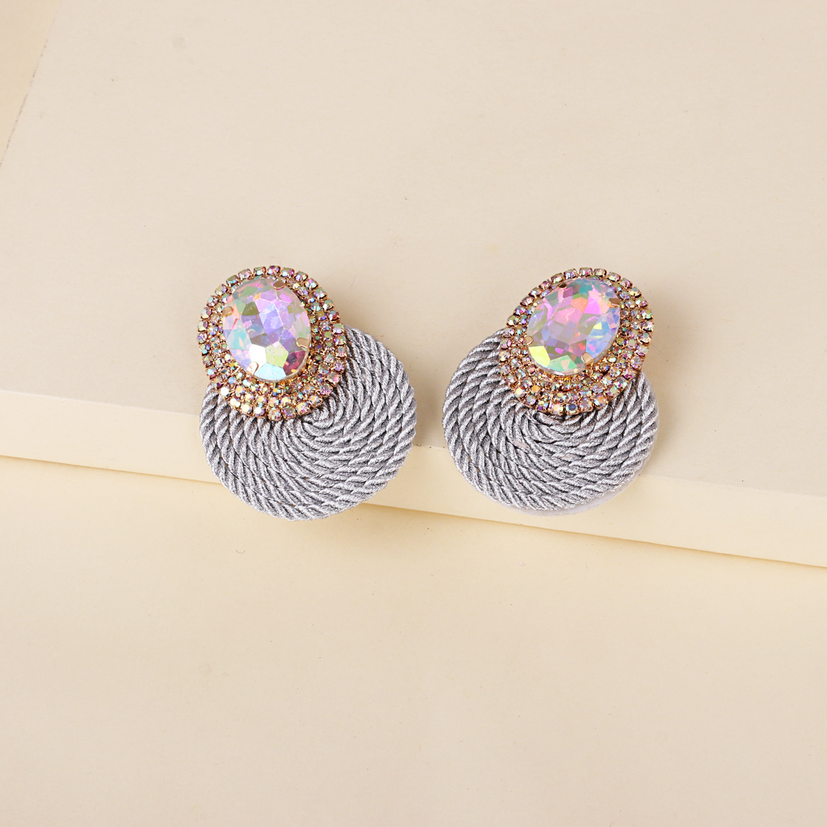 Korean new fashion wild rhinestone geometric round exaggerated earrings