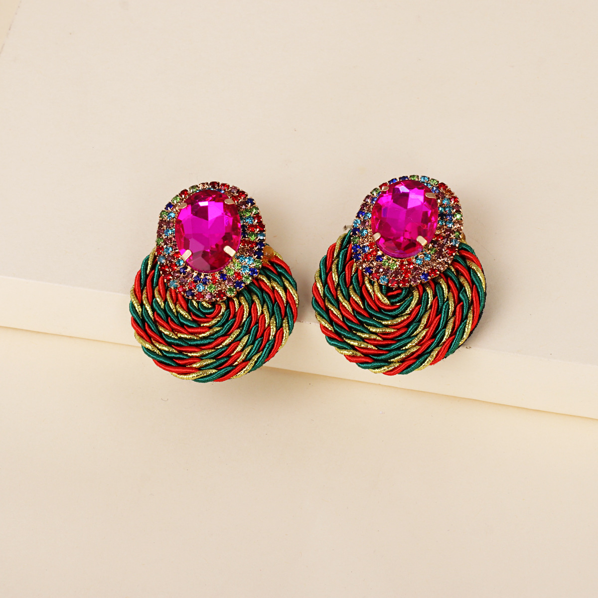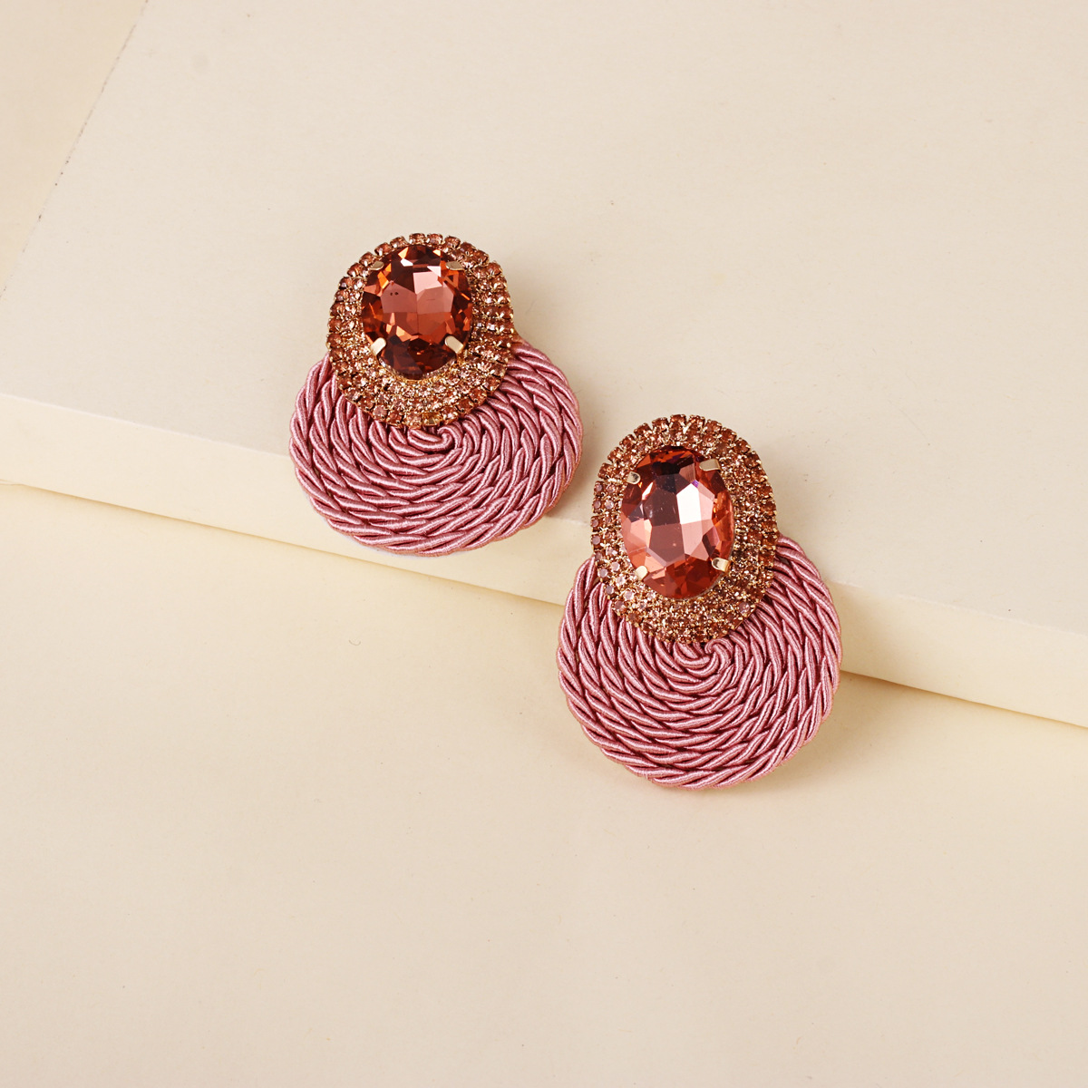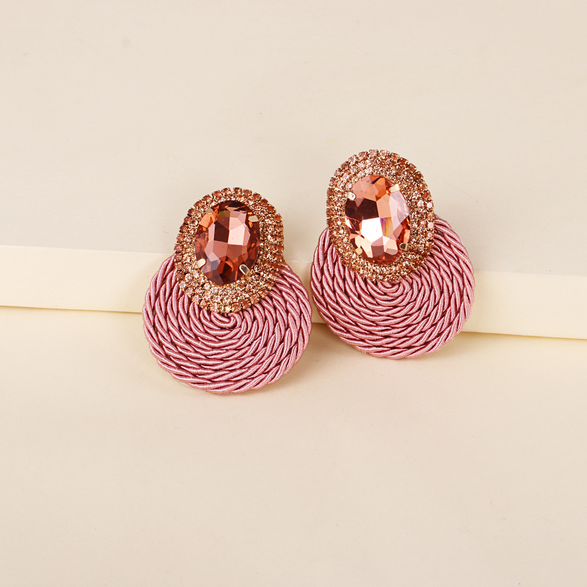 Korean new fashion wild rhinestone geometric round exaggerated earrings