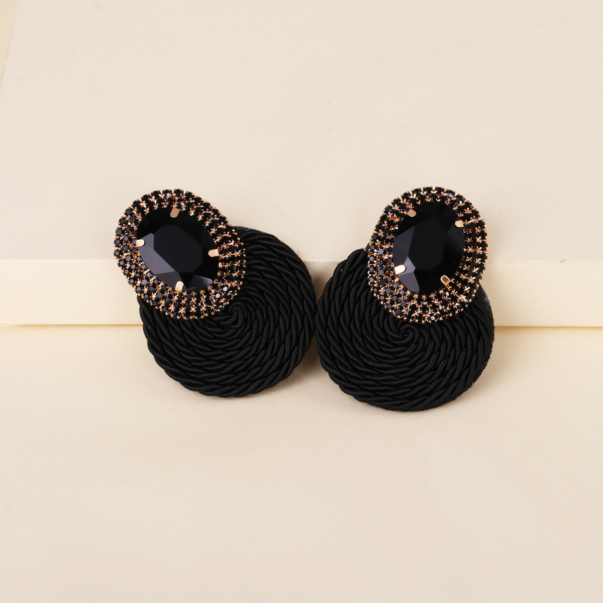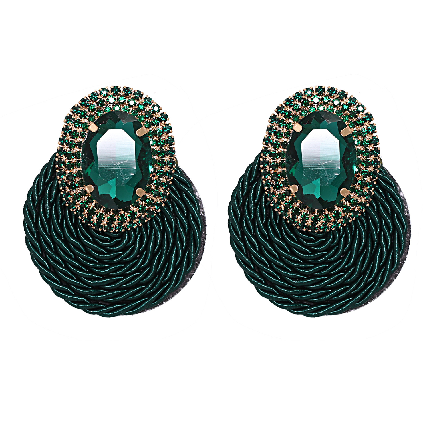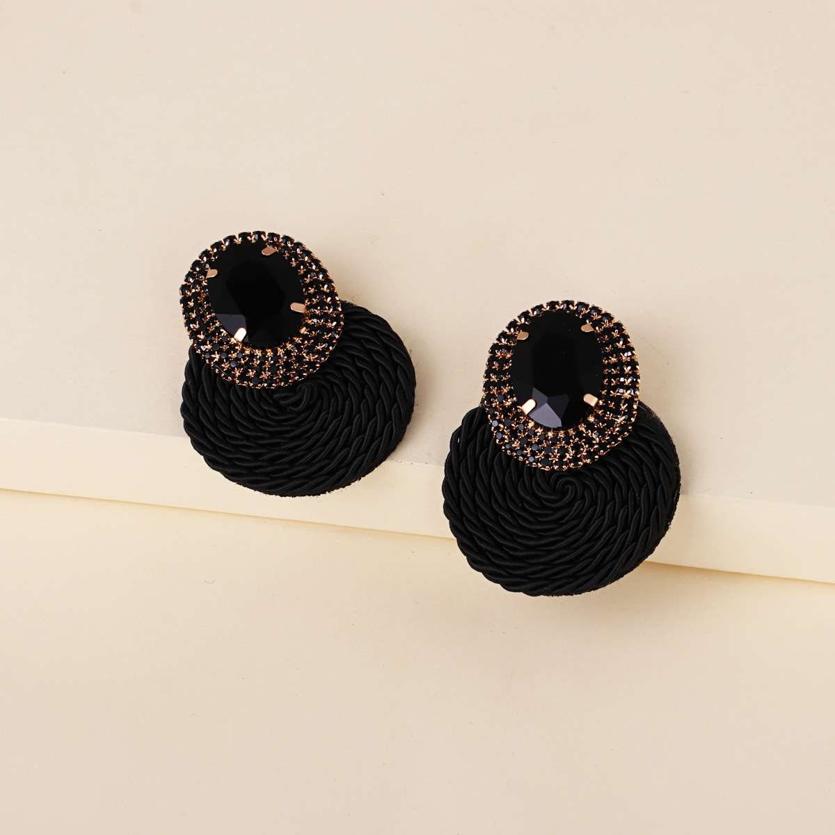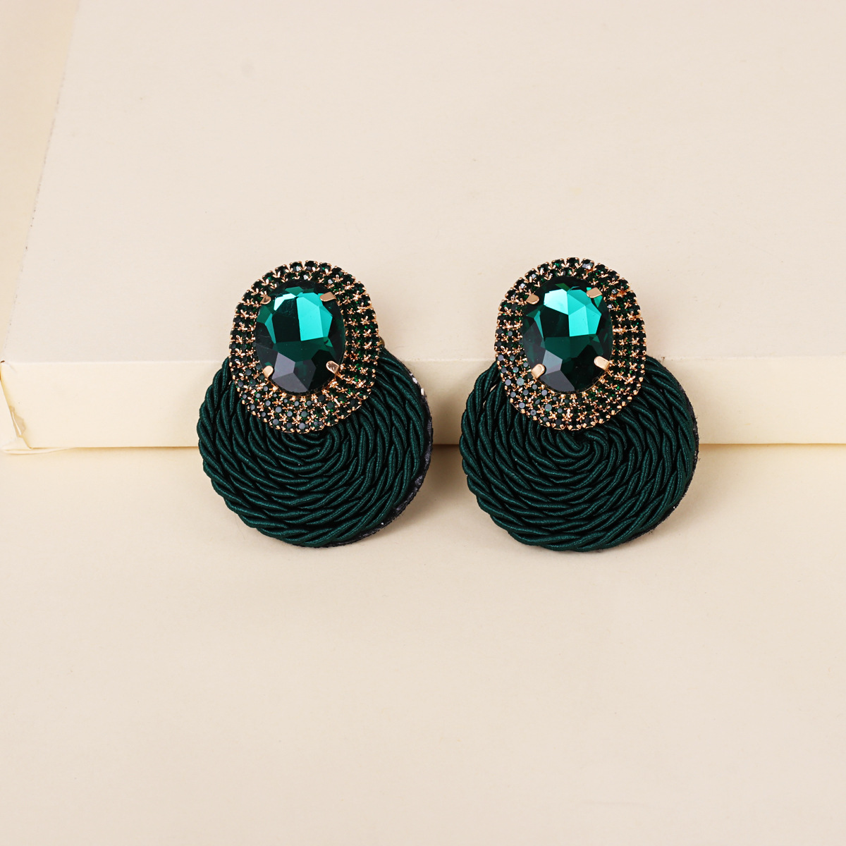Korean new fashion wild rhinestone geometric round exaggerated earrings