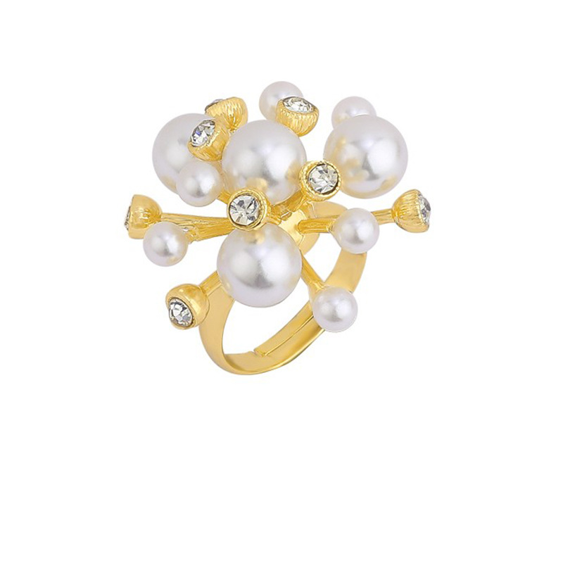 Korean new fireworks pearl rhinestone ring opening ring wholesale