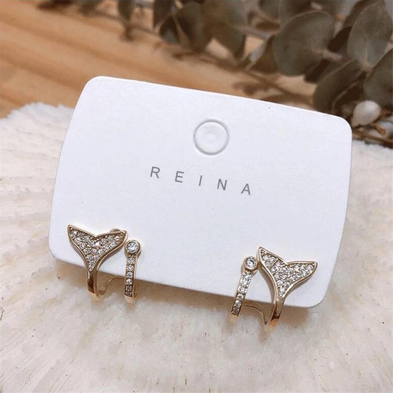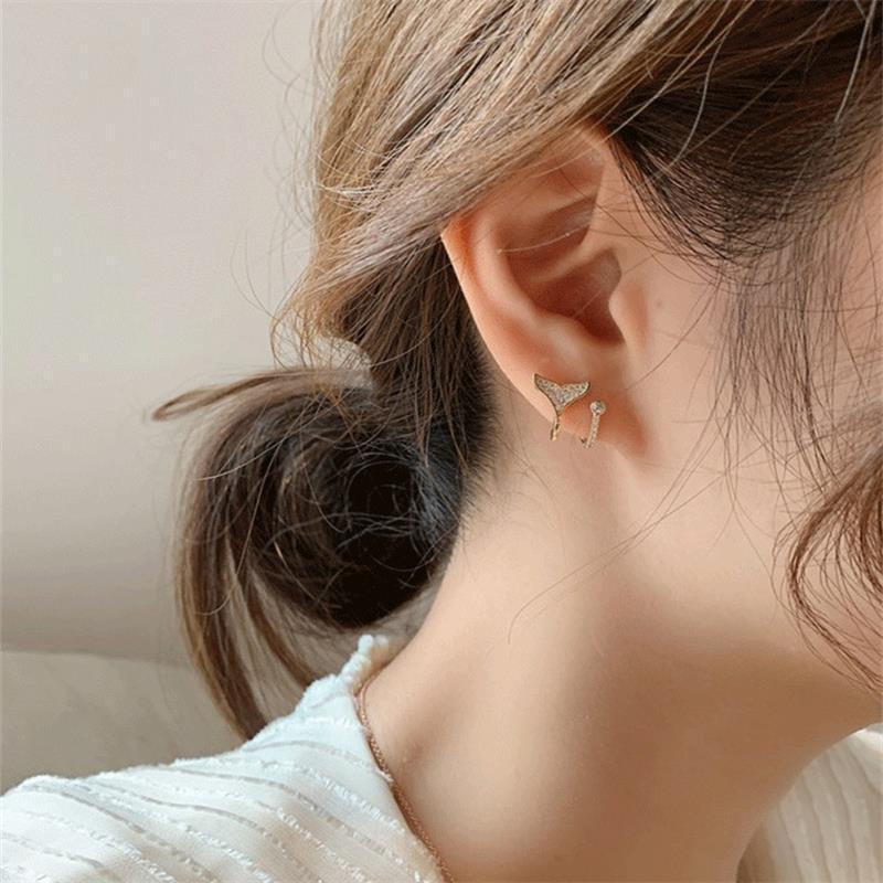 Koreau0027s S925 silver needle simple micro-inlaid zircon fishtail wild earrings
