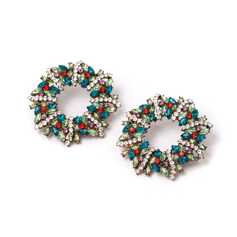 51611 European and American New Christmas Wreath Personalized Ear Studs Alloy Rhinestone-Encrusted J
