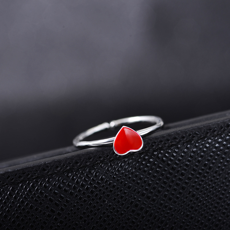 New fashion silver ring female Korean opening adjustable ring heart-shaped love red heart bracelet